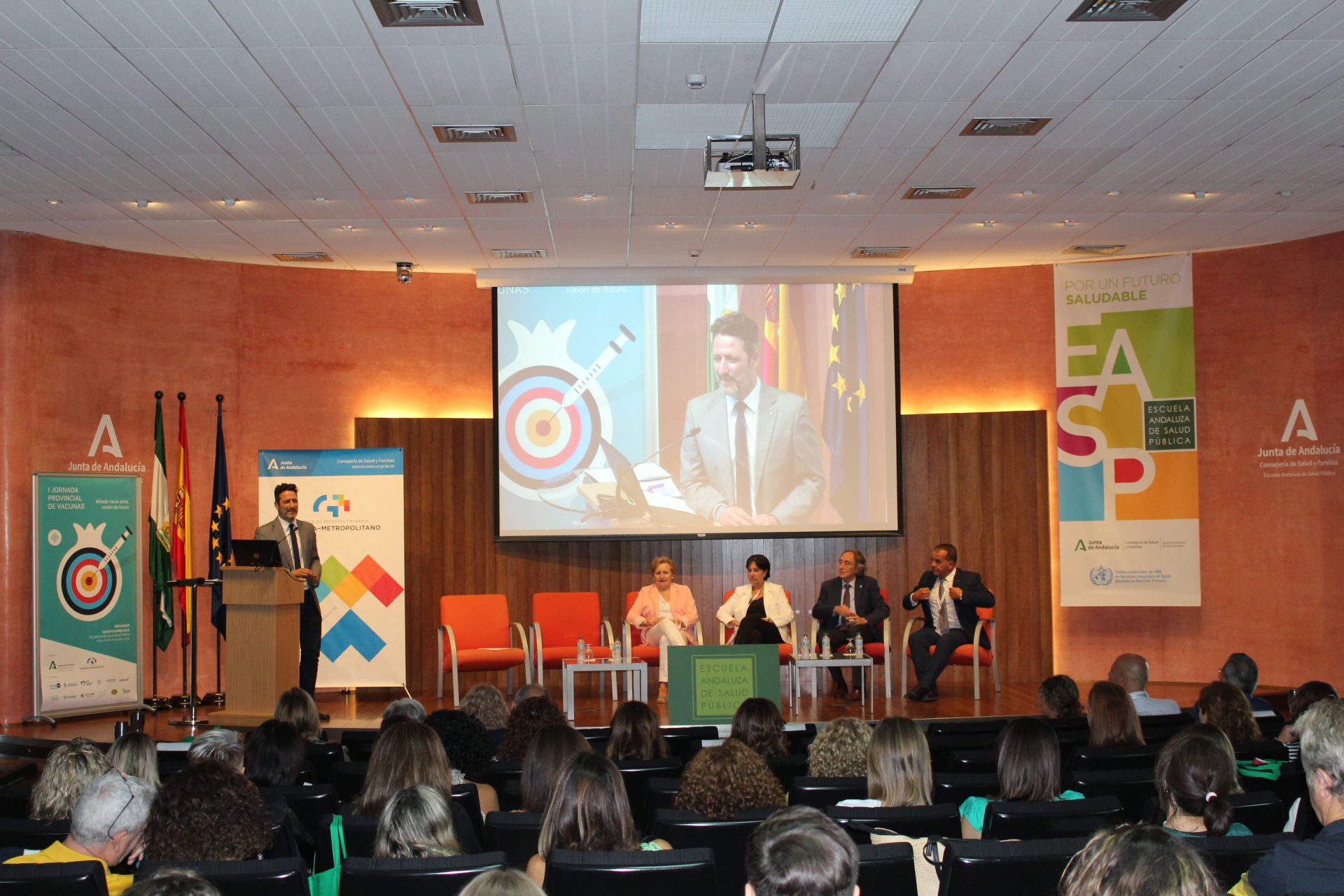 Más de un centenar de profesionales sanitarios han participado en la I Jornada provincial sobre vacunación, organizada desde el Distrito Sanitario Granada Metropolitano. Las mismas se han desarrollado en la Escuela Andaluza de Salud Pública (EASP), bajo el eslogan ‘Mirada hacia atrás, visión de futuro’, con el objetivo de hacer balance de todo lo vivido desde el inicio de la pandemia por Covid19 y sentar las bases de lo aprendido de cara al porvenir.