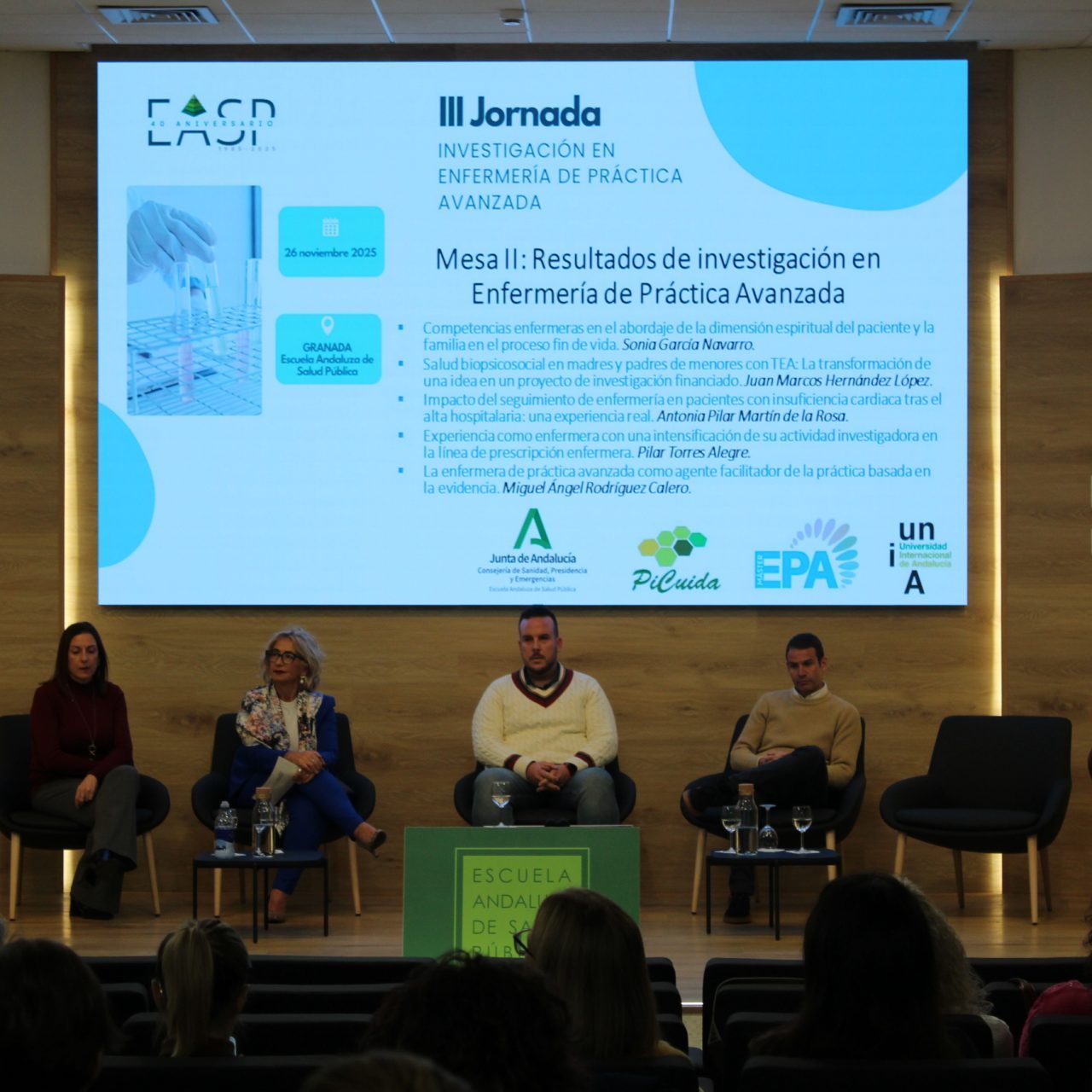 Organizada en el marco del Máster de Formación Permanente en Enfermería de Práctica Avanzada en la EASP, la Universidad Internacional de Andalucía (UNIA) y el Servicio Andaluz de Salud (SAS), a través de su Coordinación de Cuidados y Atención Sociosanitaria, la jornada tiene como objetivo reflexionar sobre las barreras, facilitadores y estrategias para fomentar la investigación en Enfermería de Práctica Avanzada (EPA), así como compartir resultados y proyectos que muestran la aportación científica de la enfermería en la mejora de la atención sanitaria