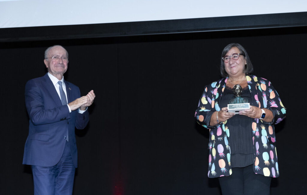 María José Sánchez recoge el premio de mano del alcalde de Málaga