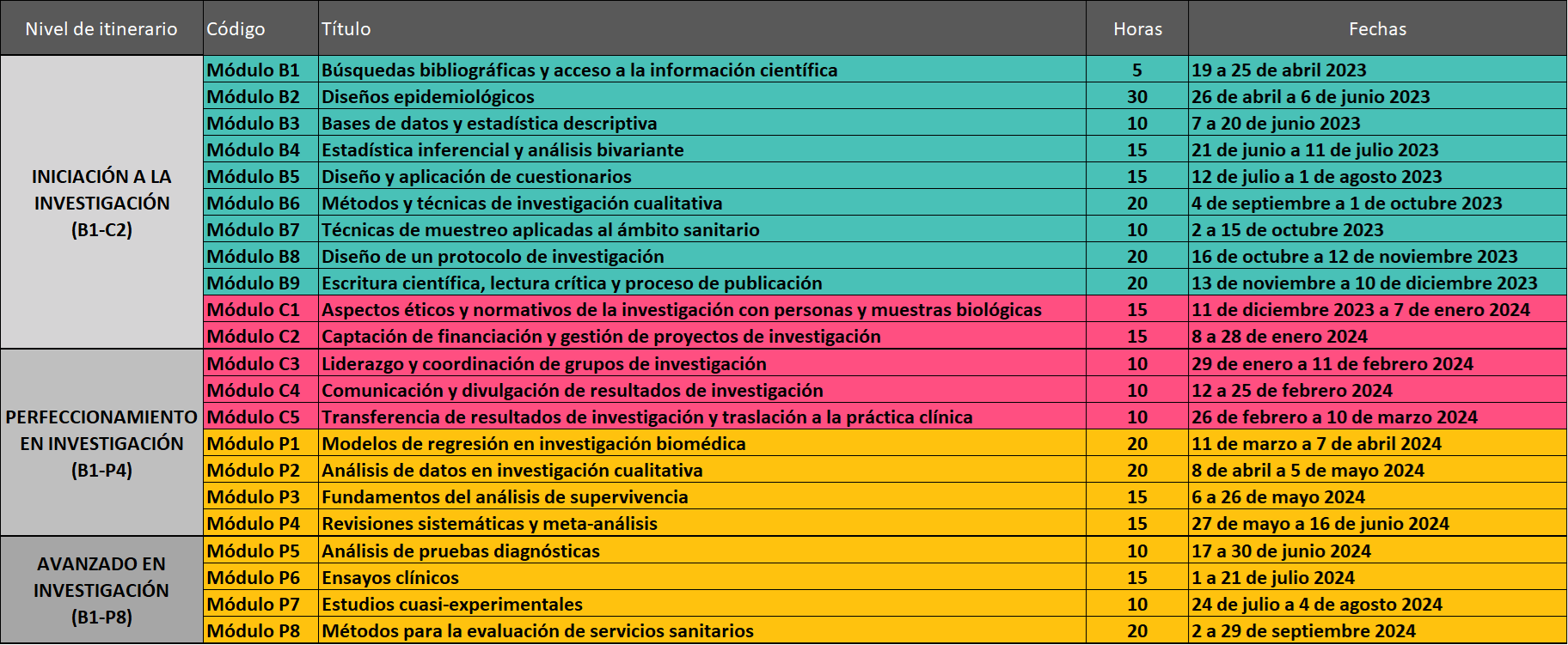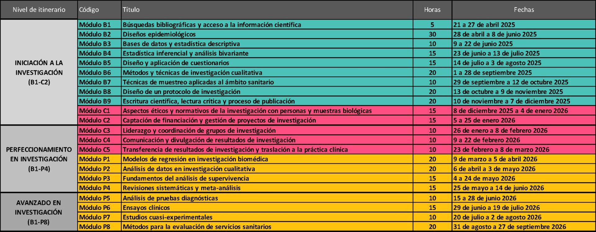 El itinerario está dirigido a profesionales del Sistema Sanitario Público Andaluz (SSPA) y será el pilar básico de la formación en Andalucía en metodología de Investigación