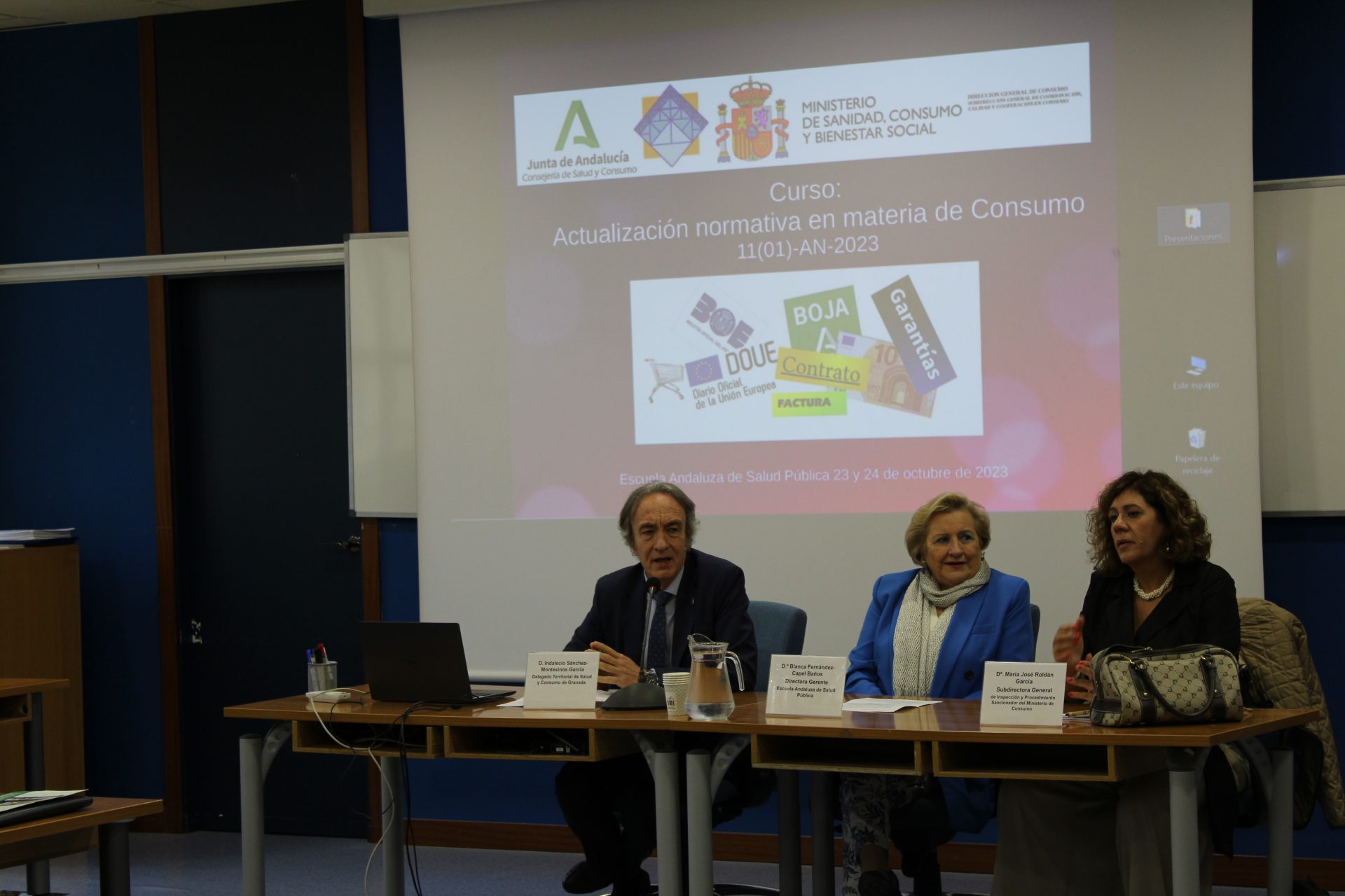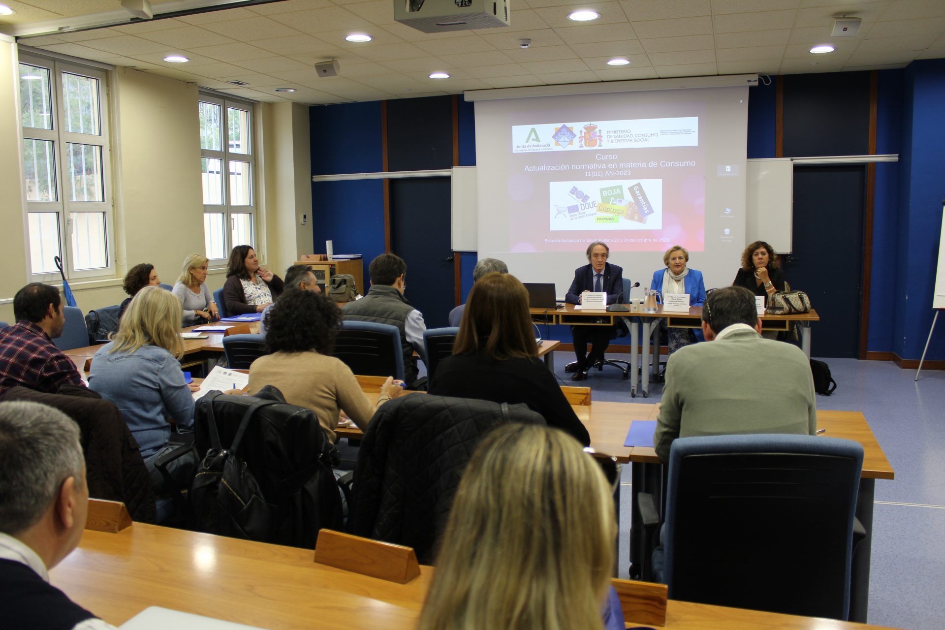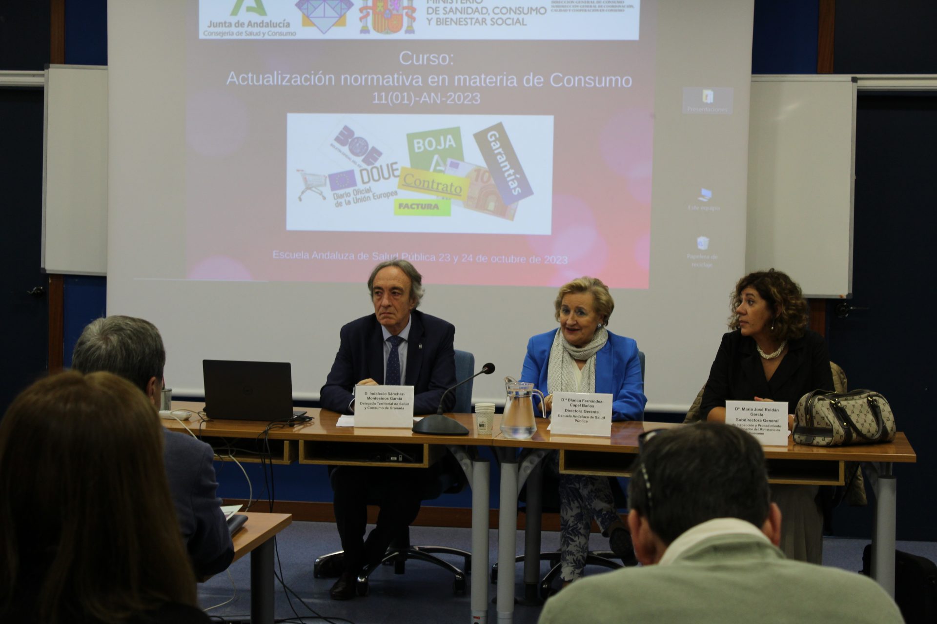 El acto de inauguración ha contado con la presencia del delegado territorial de Salud y Consumo, Indalecio Sánchez-Montesinos y la directora gerente de la EASP, Blanca Fernández-Capel. En su intervención, Sánchez-Montesinos ha agradecido la participación a los docentes, procedentes del Servicio de Consumo de Jaén, de la Dirección General de Consumo, del Ministerio de Consumo y de las universidades de Granada y Jaén. “Igualmente”, ha dicho “a todos los asistentes que, en definitiva, son los que van a trasladar a la ciudadanía los conocimientos adquiridos, tanto en labores de información como en la tramitación de reclamaciones”.