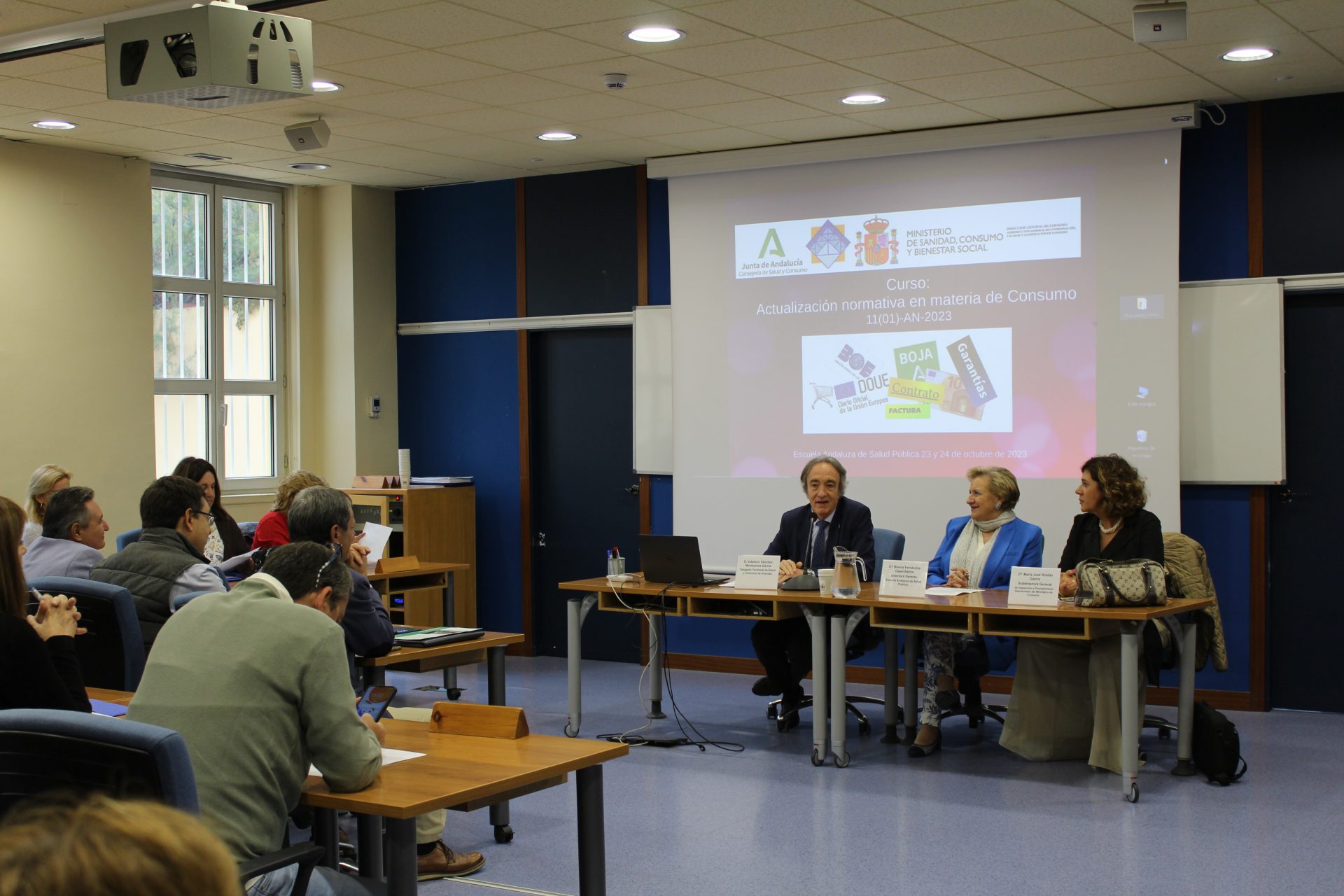El salón de actos de la Escuela Andaluza de Salud Pública (EASP) acoge hoy lunes y mañana martes unas jornadas informativas sobre Actualización normativa en materia de Consumo. Más de 30 empleados públicos, del Estado, Comunidades Autónomas y Ayuntamientos, competentes en materia de Consumo, asisten presencialmente para actualizar sus conocimientos en algunos de los ámbitos más relevantes y con mayor incidencia sobre el conjunto de las personas consumidoras y usuarias.