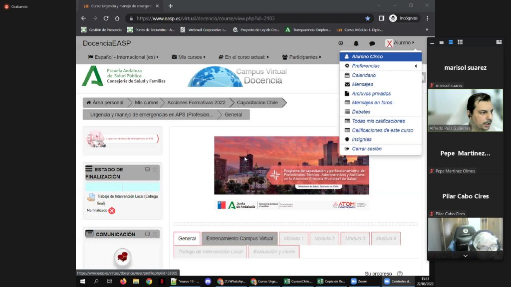 El Programa, financiado por el Ministerio de Salud de Chile, se pone en marcha en colaboración con la empresa chilena ATOM Capacitaciones, y consta de 4 actividades formativas que se prolongarán hasta finales de julio, dirigidas a profesionales, técnicos, administrativos y auxiliares en la Atención Primaria Municipal de Salud de Chile.