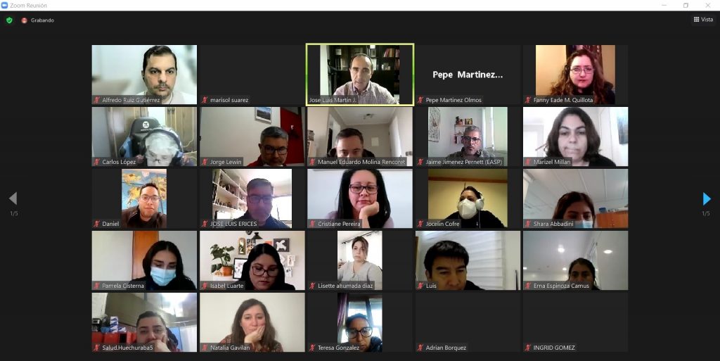 La actividad se inicia con la presencia de la directora gerente de la EASP, Blanca Fernández-Capel, el Subsecretario de Redes Asistenciales del Ministerio de Salud de Chile, Fernando Araos, la Gerente de ATOM capacitaciones, Verónica Loyola, y el profesor y coordinador del área de Internacional de la EASP, José Martínez Olmos.