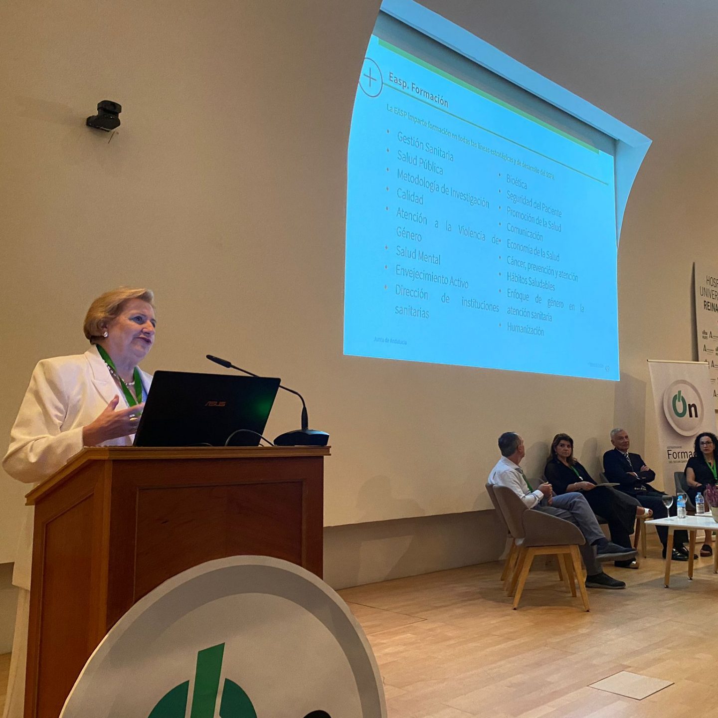 La directora gerente de la EASP, Blanca Fernández-Capel ha sido la encargada de presentar el trabajo que realiza la institución en materia de formación continuada, cuyos resultados están avalados por 38 años de experiencia, el alto grado de satisfacción del alumnado y la acreditación nivel óptimo que renueva periódicamente la Agencia de Calidad Sanitaria de Andalucía.
