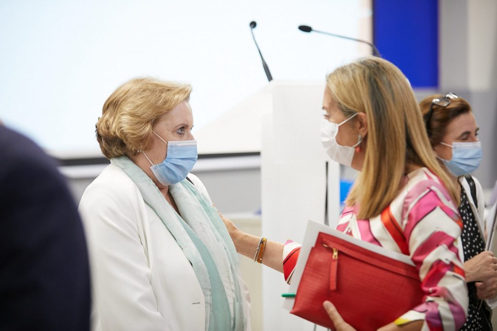 La vicepresidenta segunda de la mesa del Congreso, Ana Pastor saluda a la directora gerente de la EASP, Dra. Fernández-Capel en la ceremonia de entrega de las becas del MOM.