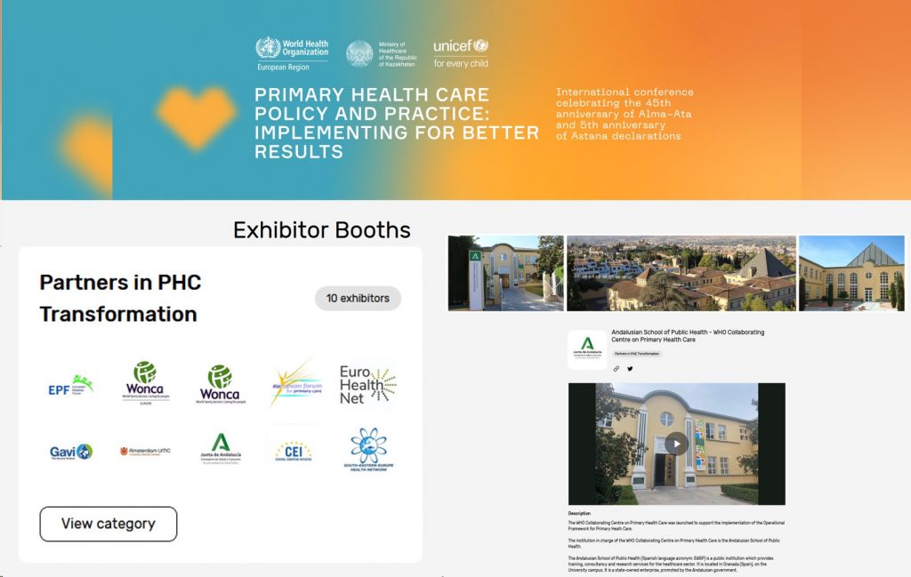La Escuela Andaluza de Salud Pública (EASP), institución de la Consejería de Salud y Consumo, ha sido invitada por la Organización Mundial de la Salud (OMS) a participar en la Conferencia Internacional de conmemoración de los 45 años de la Declaración de Alma-Ata y los 5 de la de Astana.
