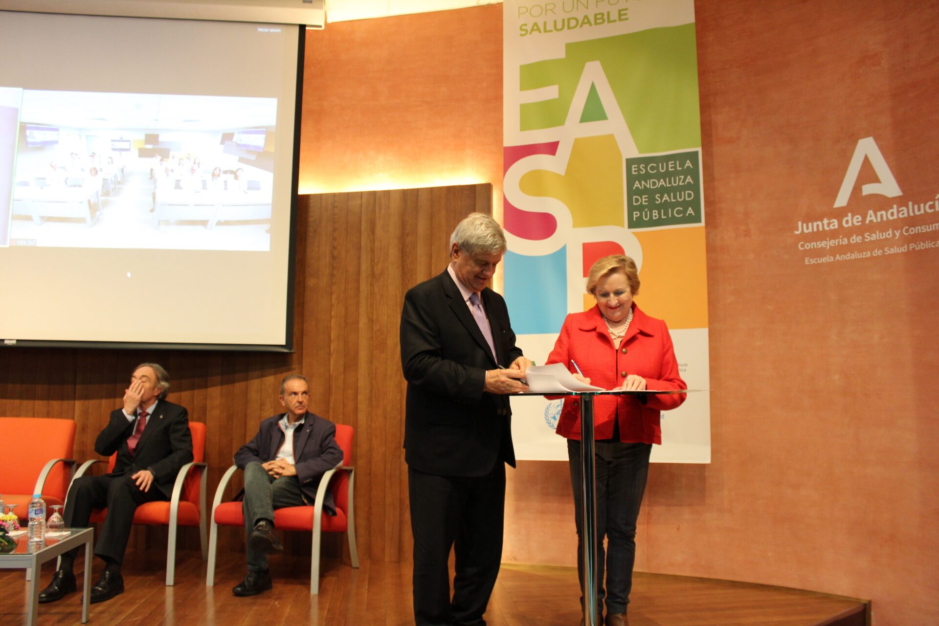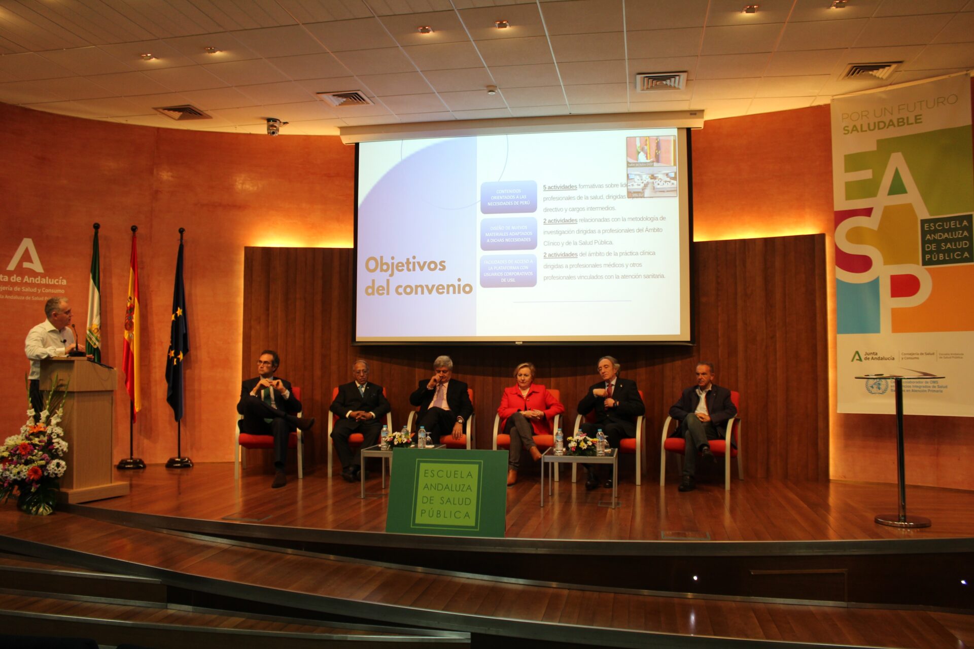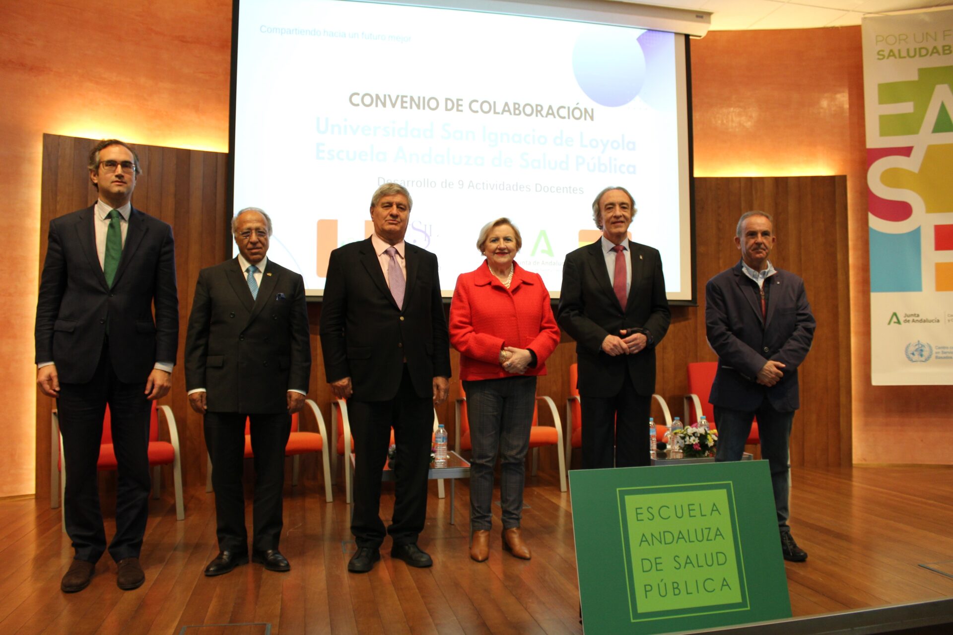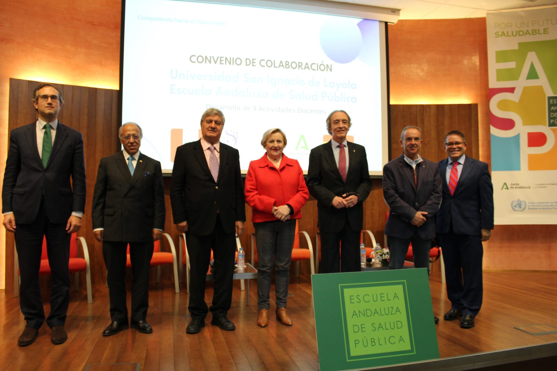 El acto ha contado con la participación del delegado territorial en Granada de Salud y Consumo, Indalecio Sánchez Montesinos, y el secretario general de la delegación de Educación en Granada, Luis Carrasco, la directora de la EASP, Blanca Fernández-Capel y las autoridades de USIL, el fundador presidente de USIL, Raúl Díez Canseco, el Gran Canciller y ex rector de USIL, Ramiro Salas, y el vicepresidente de Comunicación de USIL, José Sotomayor.