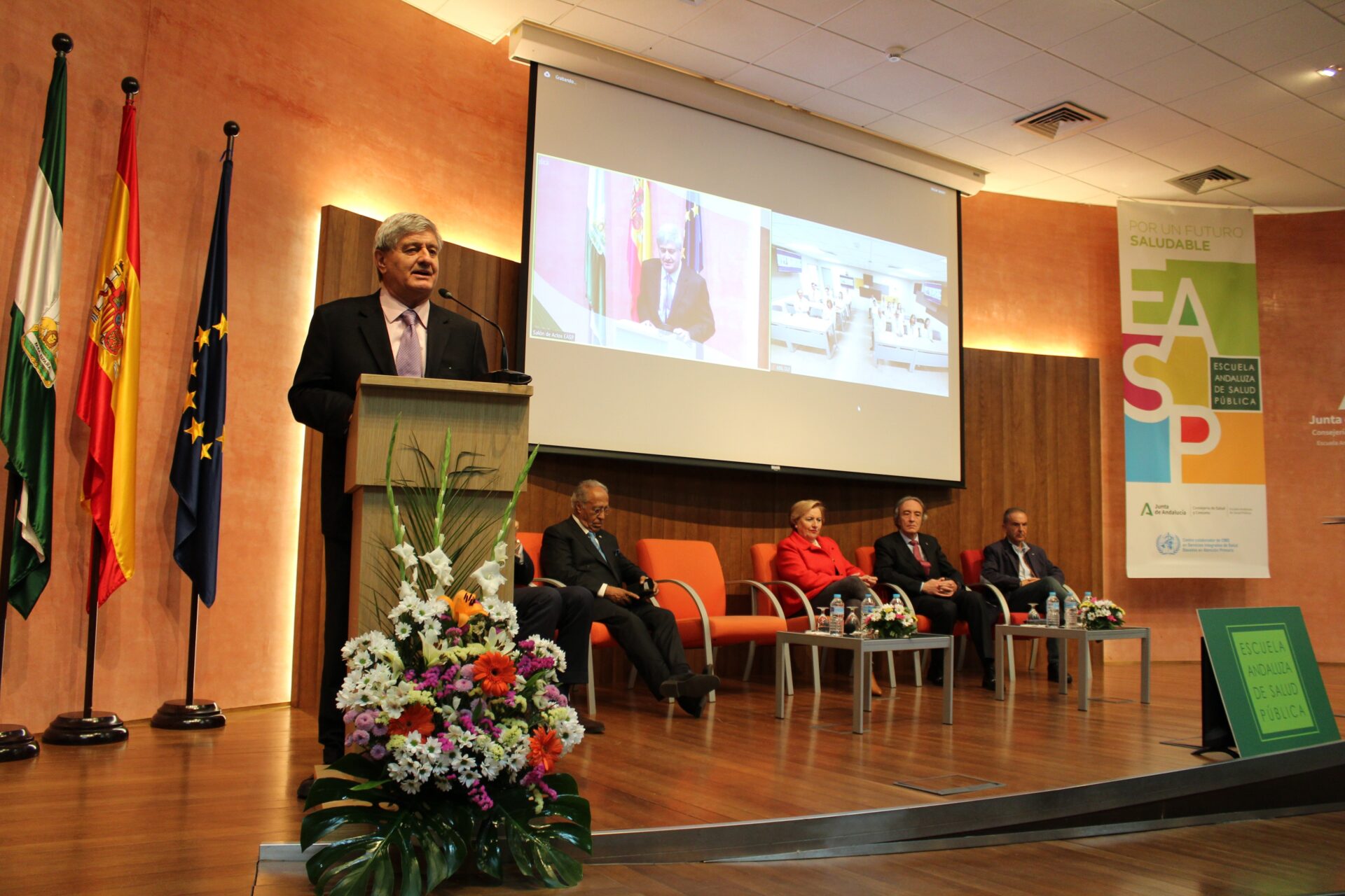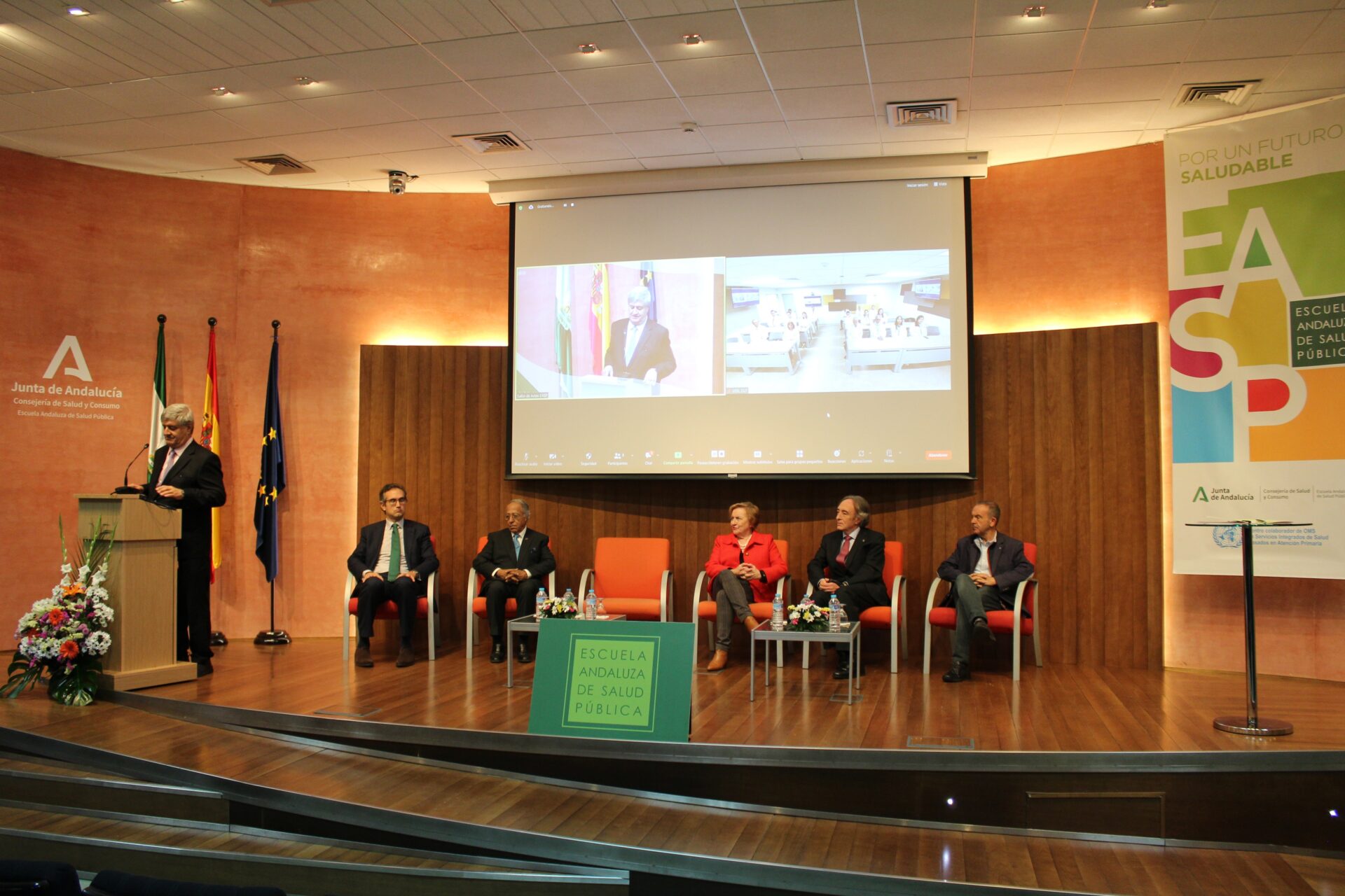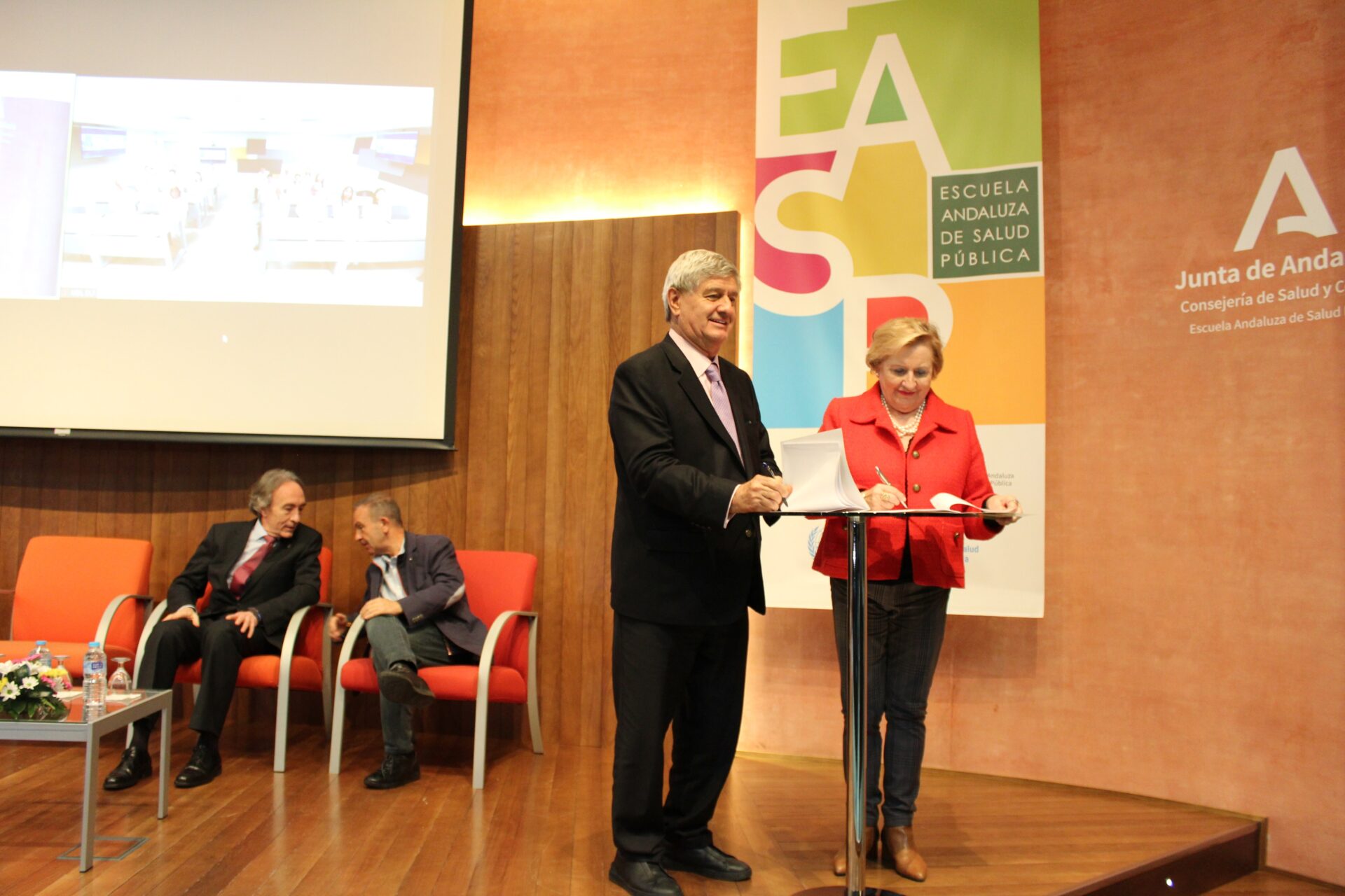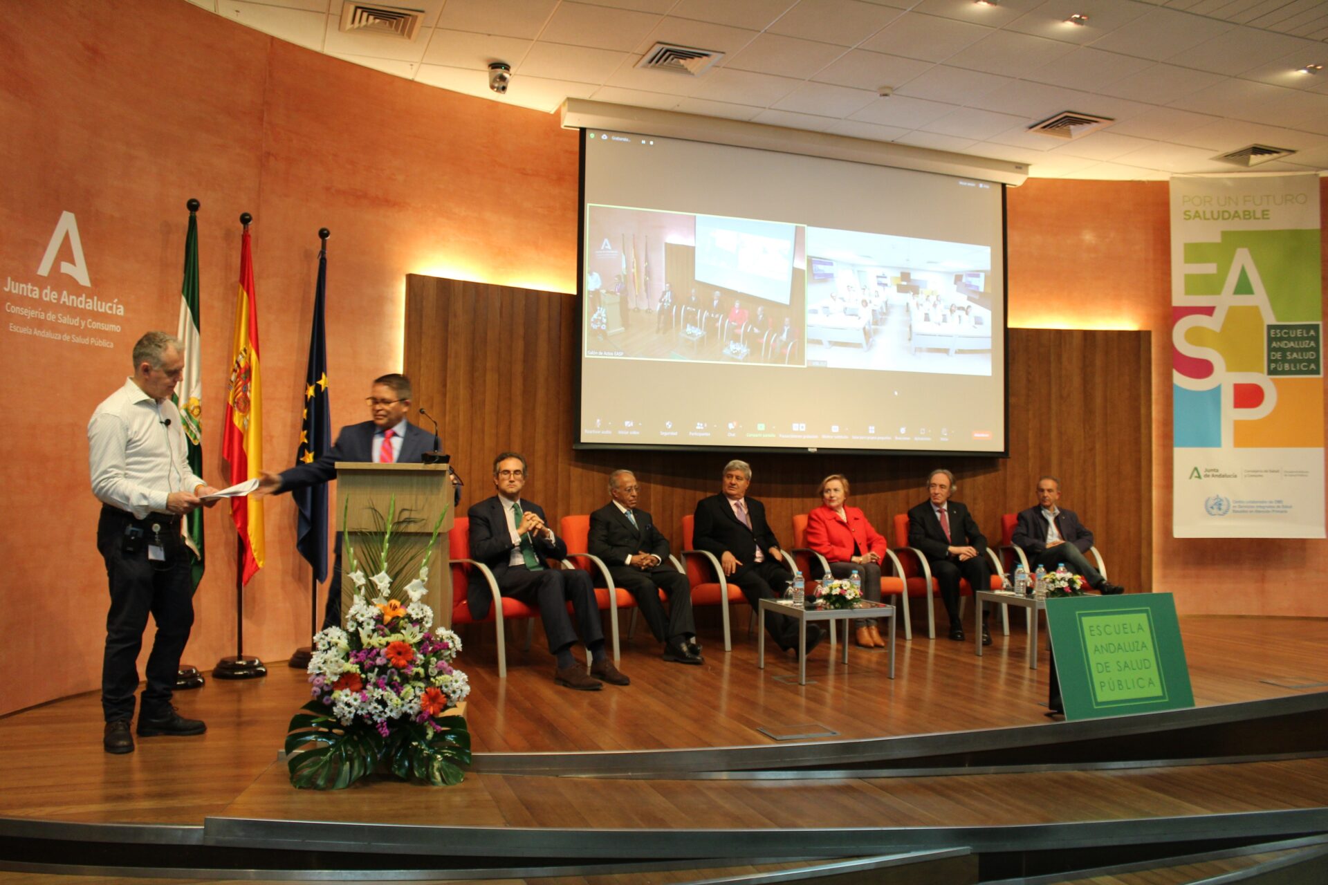 El acto ha contado con la participación del delegado territorial en Granada de Salud y Consumo, Indalecio Sánchez Montesinos, y el secretario general de la delegación de Educación en Granada, Luis Carrasco, la directora de la EASP, Blanca Fernández-Capel y las autoridades de USIL, el fundador presidente de USIL, Raúl Díez Canseco, el Gran Canciller y ex rector de USIL, Ramiro Salas, y el vicepresidente de Comunicación de USIL, José Sotomayor.