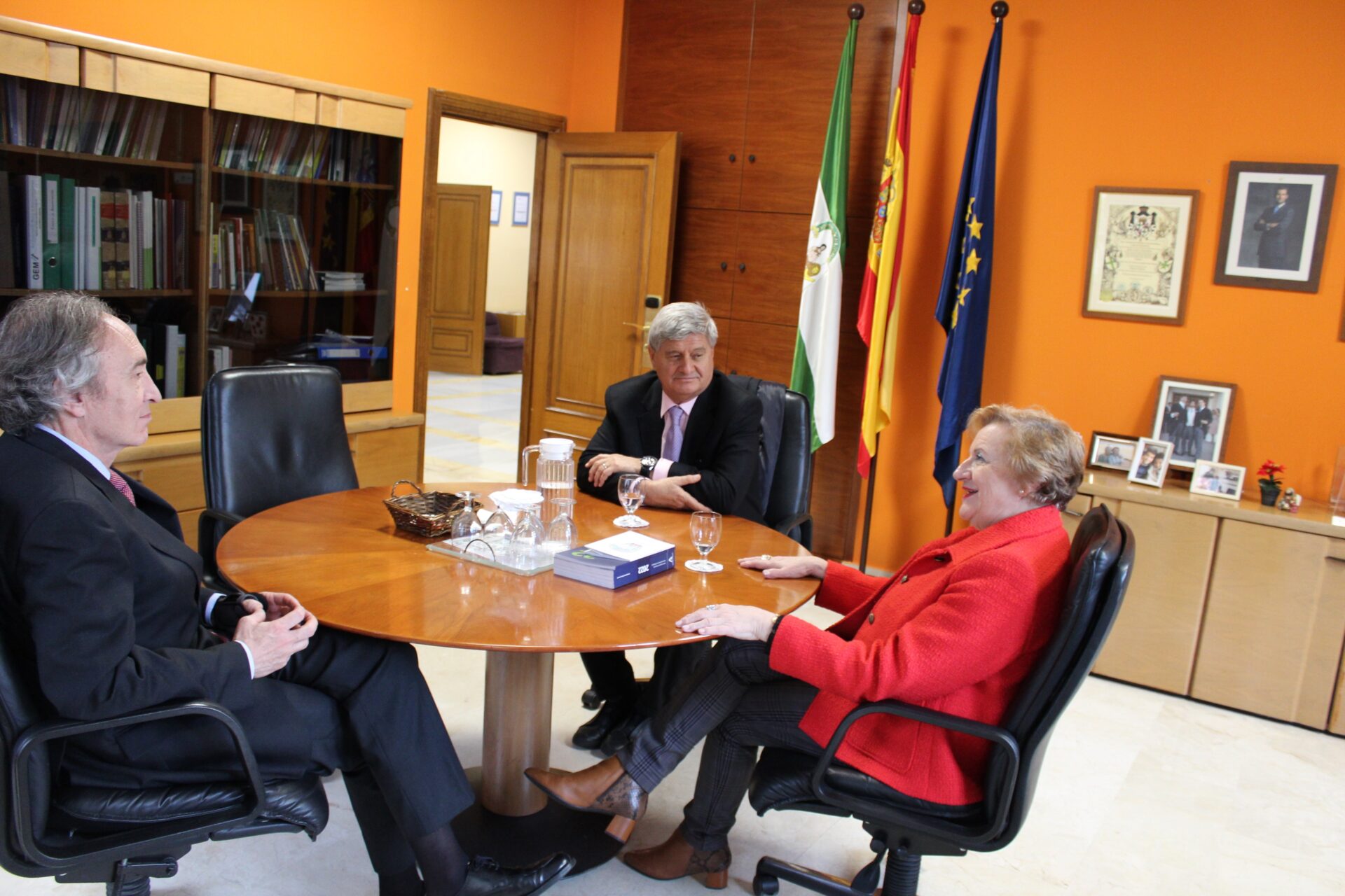 La comitiva de la USIL, acompañada por la directora gerente de la EASP, Blanca Fernández-Capel, ha sido recibida por el rector de la Universidad de Granada, Pedro Mercado Pacheco, el vicerrector de Investigación, Enrique Herrera y la alcaldesa de Granada, Marifrán Carazo.