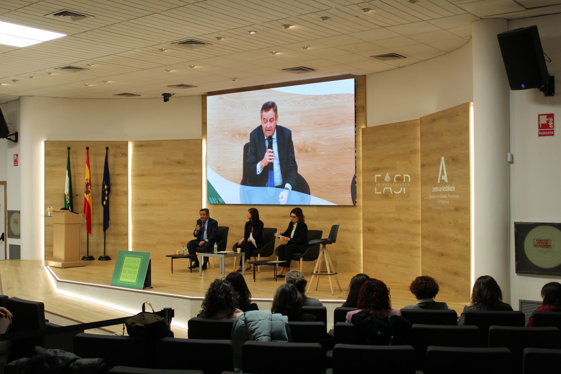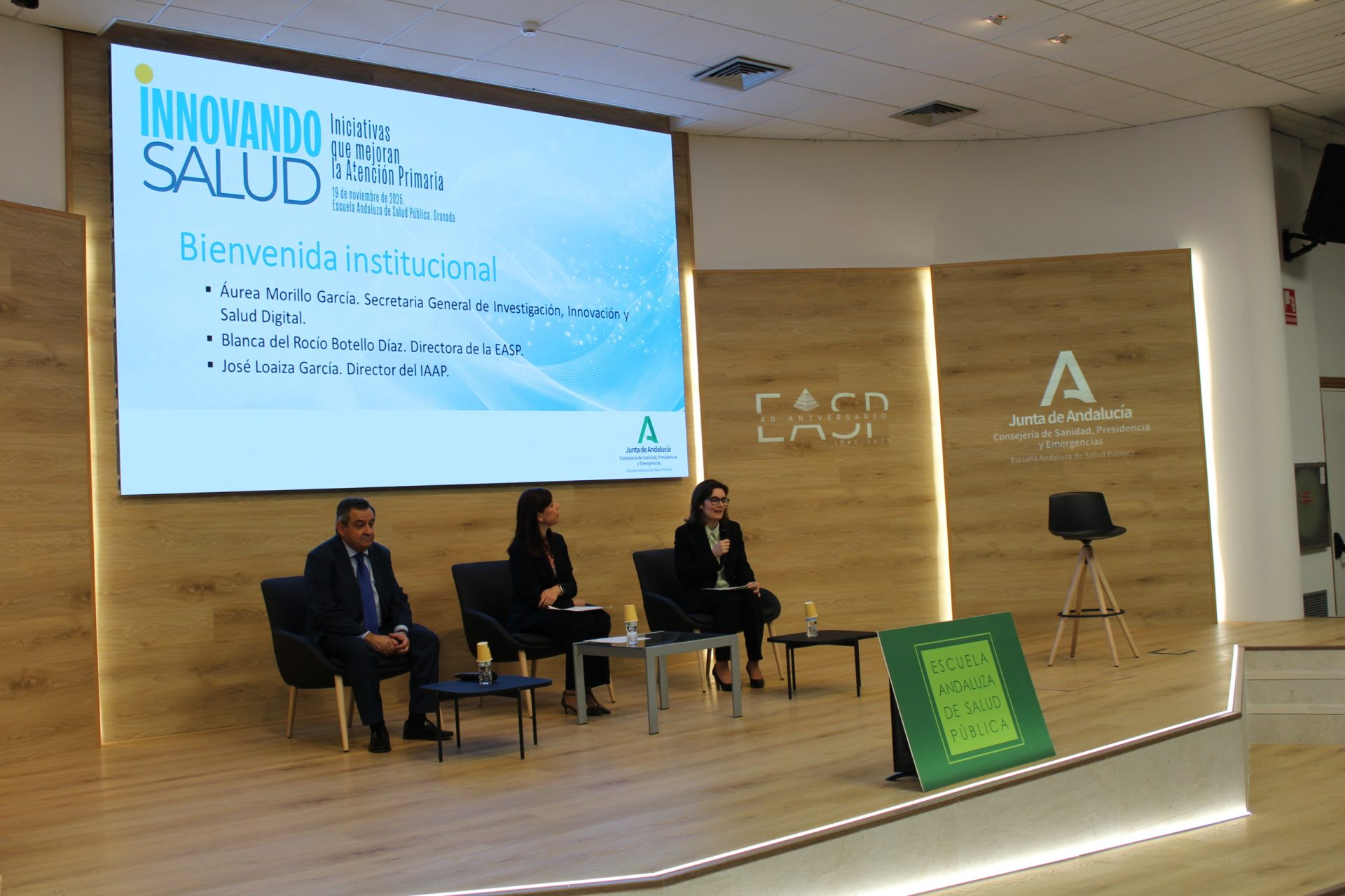 El acto de bienvenida ha contado con la secretaria general de Investigación, Innovación y Salud Digital, Áurea Morillo García; la directora de la Escuela Andaluza de Salud Pública, Blanca Botello Díaz; y el director del Instituto Andaluz de Administración Pública (IAAP), José Loaiza García.