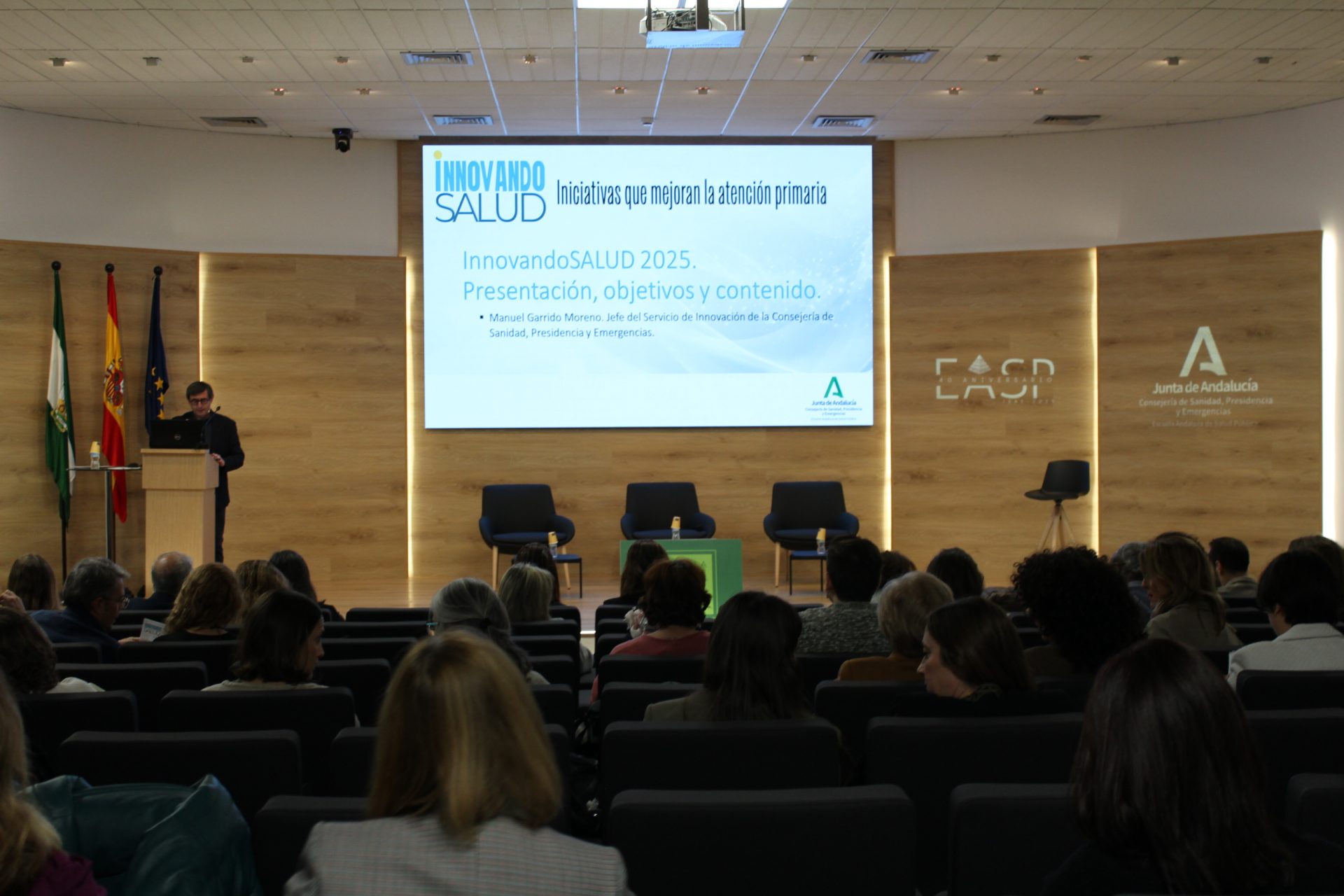 Más de 280 profesionales sanitarios han asistido a este encuentro de innovación organizado por el Servicio de Innovación de la Secretaría General de Investigación, Innovación y Salud Digital de la Consejería de Sanidad, Presidencia y Emergencias, en colaboración con la Escuela Andaluza de Salud Pública (EASP) y el apoyo del Servicio Andaluz de Salud (SAS).