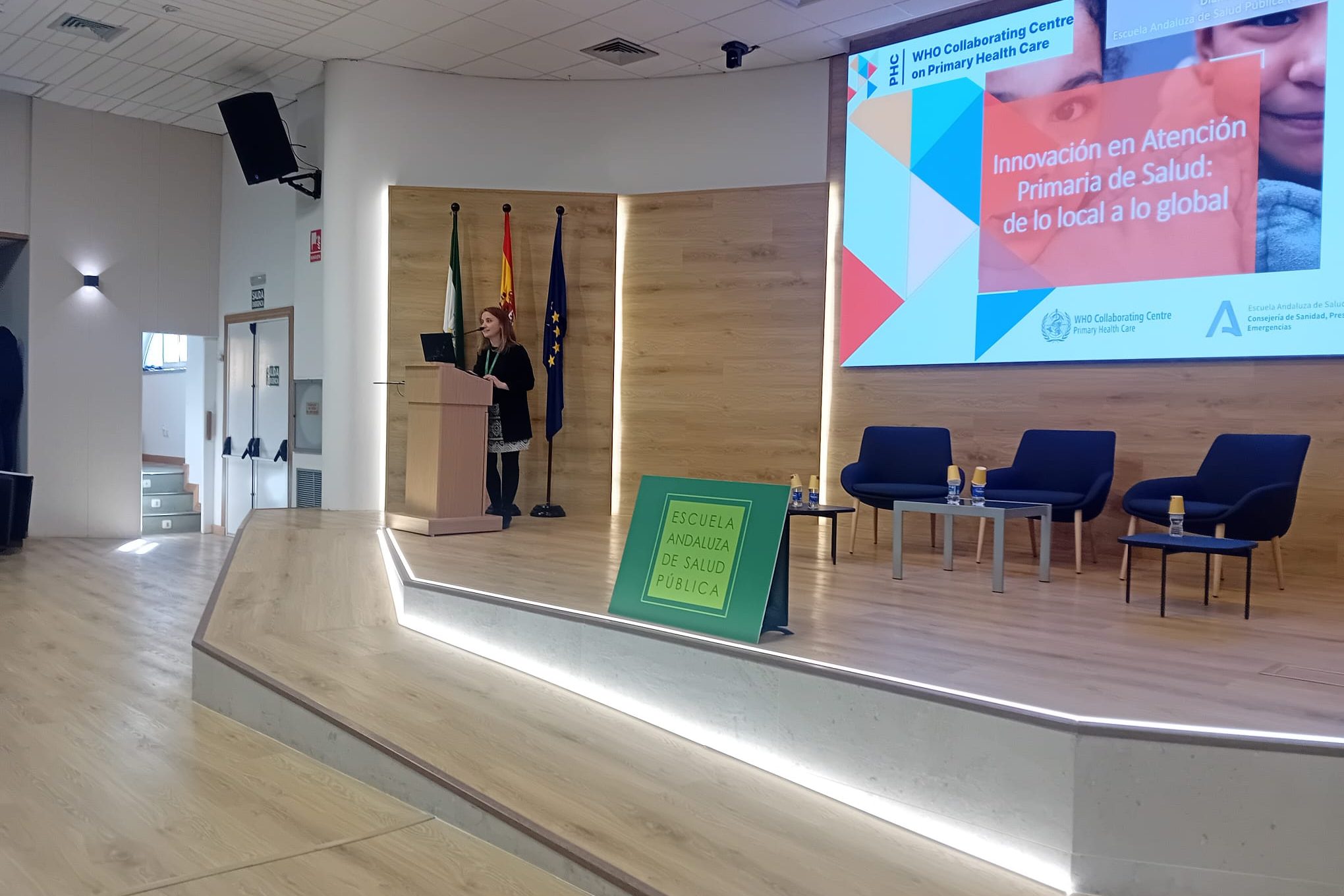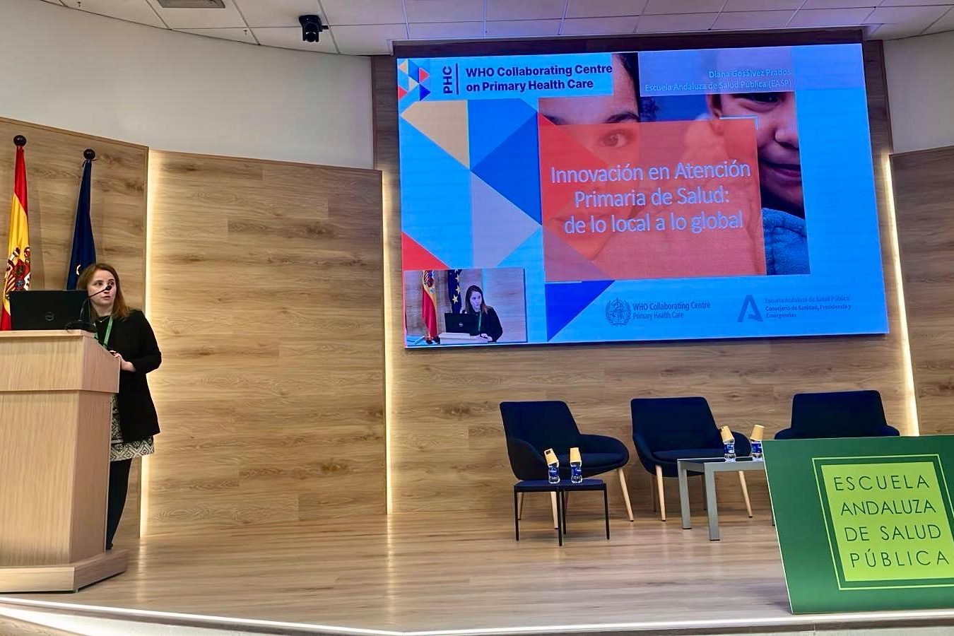 El evento se ha cerrado con un espacio dedicado a explicar, por parte de la profesora de la EASP, Diana Gosálvez Prados, el papel que desarrolla la Escuela Andaluza de Salud Pública como Centro Colaborador de la Organización Mundial de la Salud (OMS) en Atención Primaria de Salud.