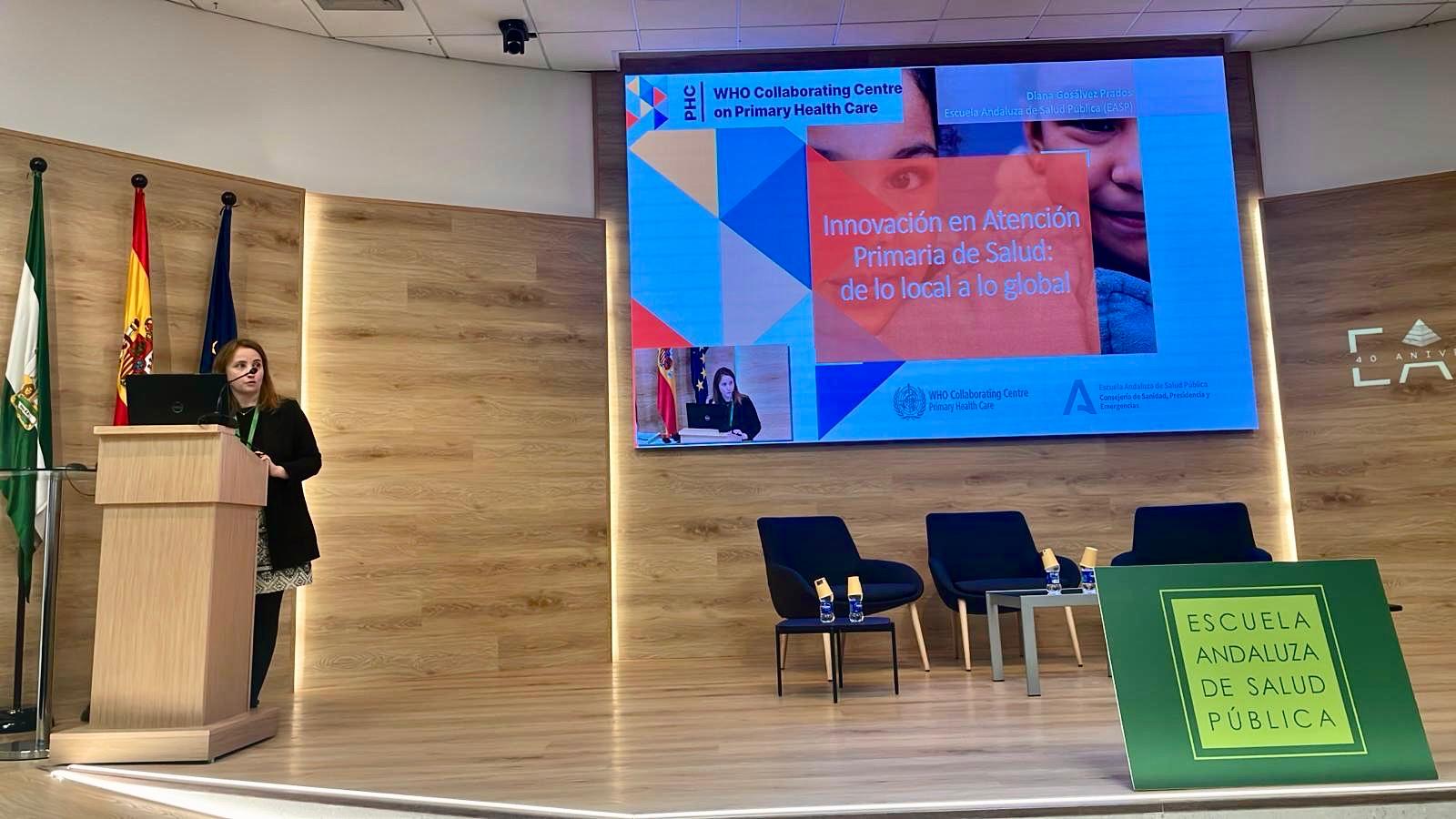 El evento se ha cerrado con un espacio dedicado a explicar, por parte de la profesora de la EASP, Diana Gosálvez Prados, el papel que desarrolla la Escuela Andaluza de Salud Pública como Centro Colaborador de la Organización Mundial de la Salud (OMS) en Atención Primaria de Salud.