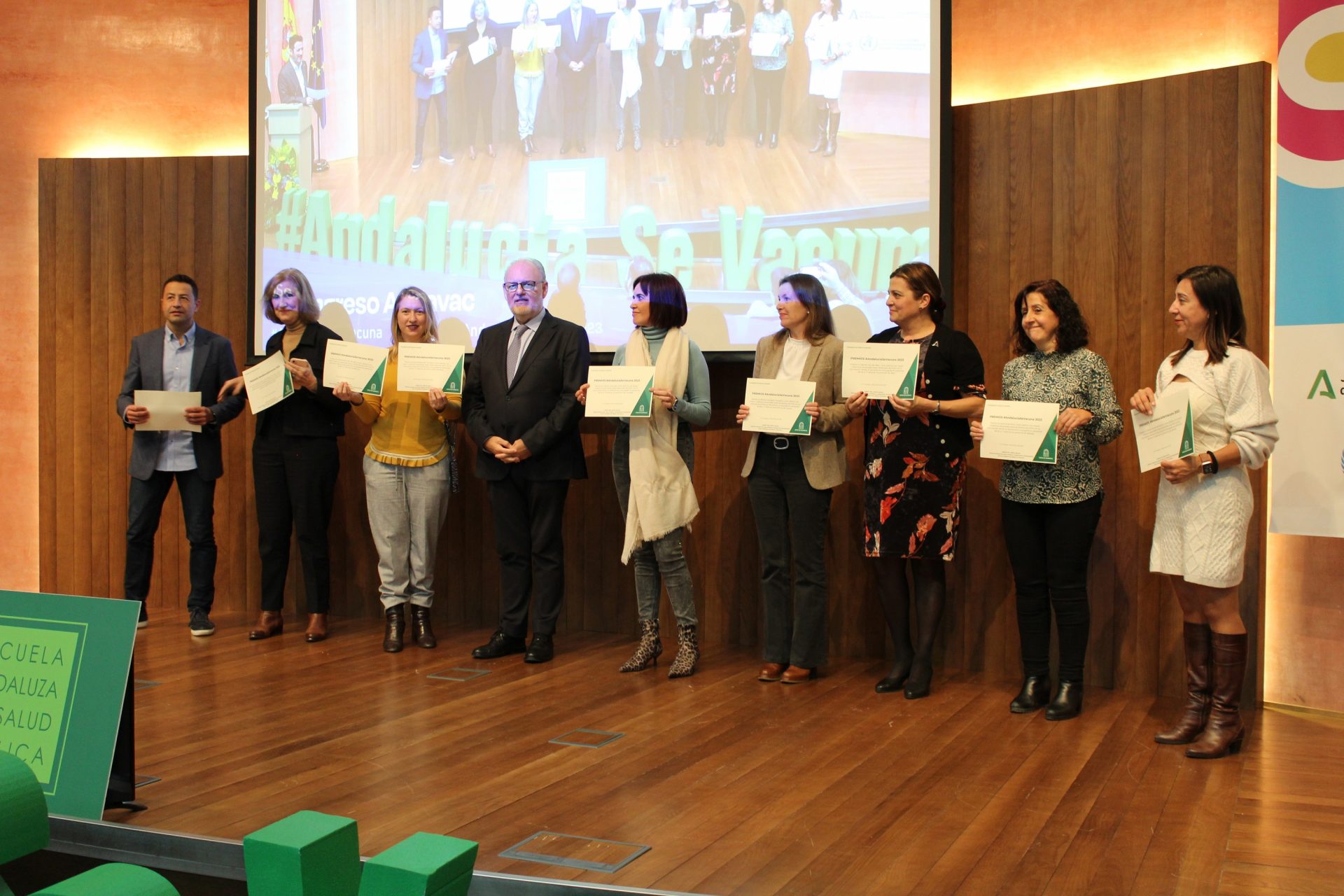 Este II Congreso Andavac, tras la celebración de distintas mesas redondas, debates y cuatro talleres prácticos, se ha clausurado con la entrega de los Premios #AndalucíaSeVacuna 2023, con los que la Consejería de Salud y Consumo reconoce la entrega de los profesionales sanitarios durante las campañas de vacunación. En esta ocasión, el distrito sanitario Córdoba Sur ha sido el que mayor cobertura de la vacuna de la gripe en mayores de 65 años ha alcanzado en la campaña 2021-22 de toda Andalucía; Jaén Sur en la campaña del meningococo ACWY en adolescentes y jóvenes de 12 a 20 años; Córdoba en la del papilomavirus con pauta completa para chicas de 12 a 18 años; y Córdoba Norte en la campaña del neumococo conjugada de 60 a 71 años.