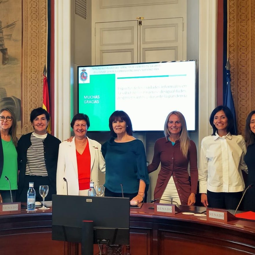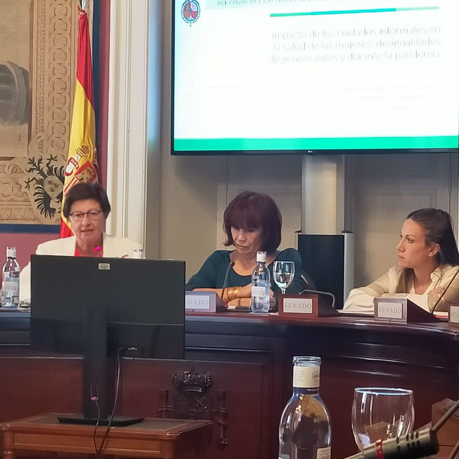 La intervención de la Dra. García Calvente que trató sobre el Impacto de los cuidados informales en la salud de las mujeres: desigualdades de género antes y durante la pandemia, mostró cómo «la pandemia por COVID-19 ha supuesto una mayor sobrecarga de cuidados no remunerados que han recaído especialmente sobre las mujeres, ellas han sufrido más que los hombres las consecuencias de cuidar sobre su salud tanto física como emocional y sobre otras dimensiones de su vida como, por ejemplo la pérdida de empleo.