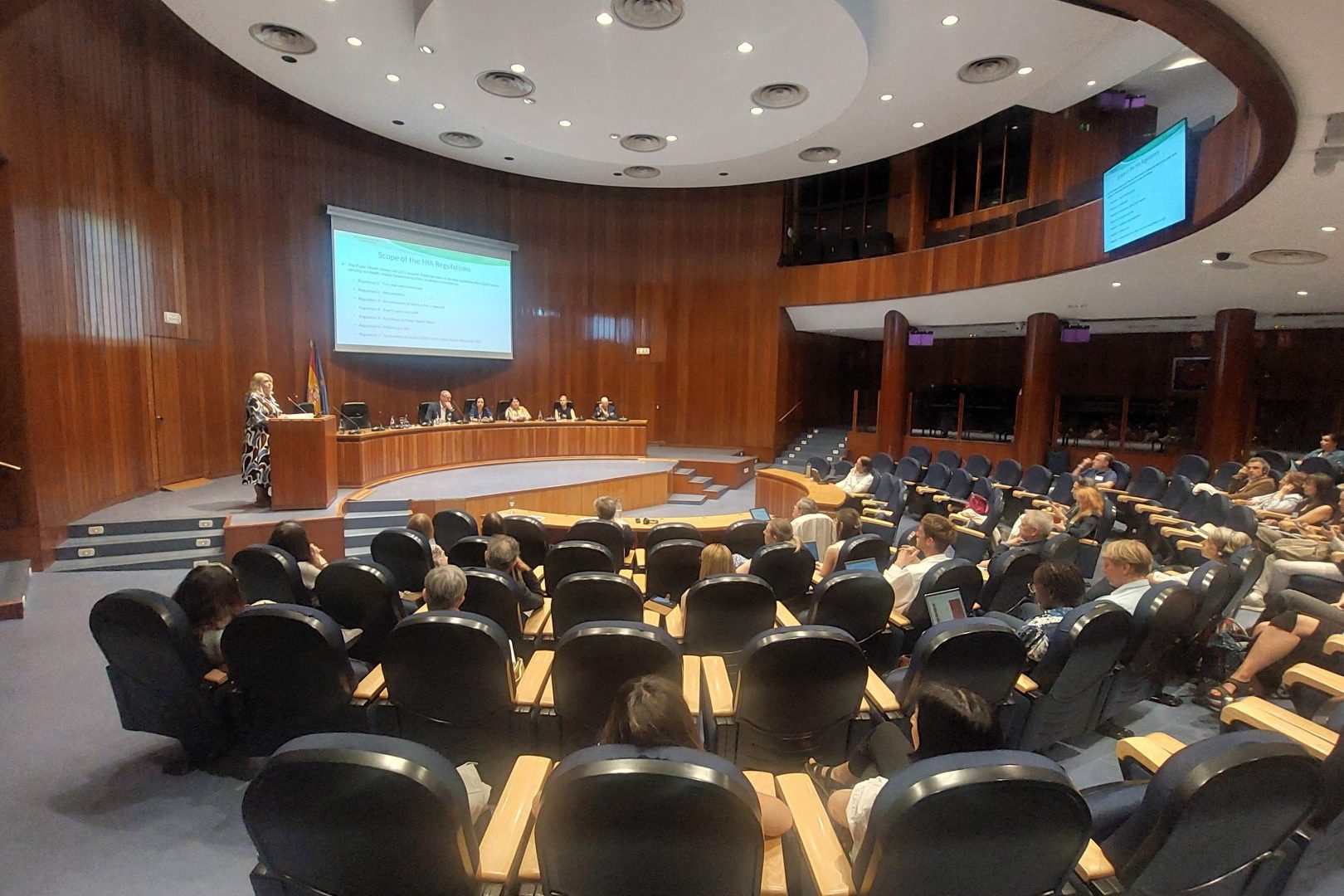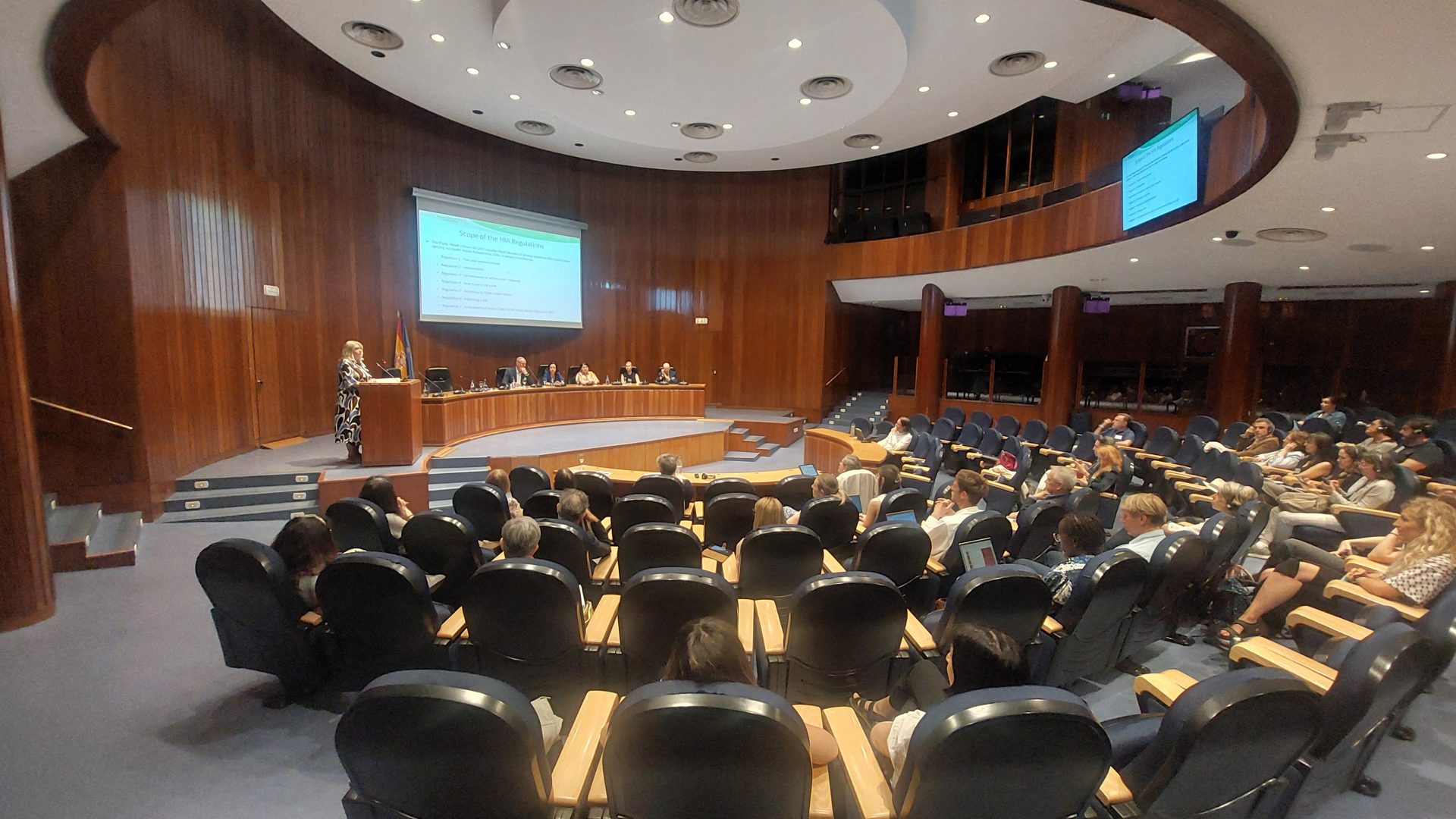 El programa ha ofrecido un recorrido riguroso y actualizado por las dimensiones clave del HIA, partiendo de una visión estratégica de salud en todas las políticas públicas. A lo largo de las distintas mesas redondas se presentaron marcos legislativos innovadores, como el que está desarrollando el Gobierno de Gales, y experiencias institucionales como las de Austria, Georgia y diversas comunidades autónomas españolas. Estas intervenciones permitieron contrastar diferentes enfoques y niveles de desarrollo, y resaltaron el papel del derecho y la colaboración intersectorial como elementos clave para que la evaluación del impacto en salud no quede relegada a un ejercicio técnico, sino que se consolide como un instrumento útil para la toma de decisiones y la mejora de las políticas públicas y la salud de los ciudadanos.