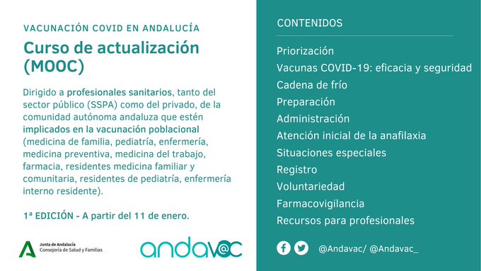 Más de 3.200 profesionales sanitarios inscritos en 24 horas en el curso sobre vacunación COVID-19 organizado por Salud y Familias