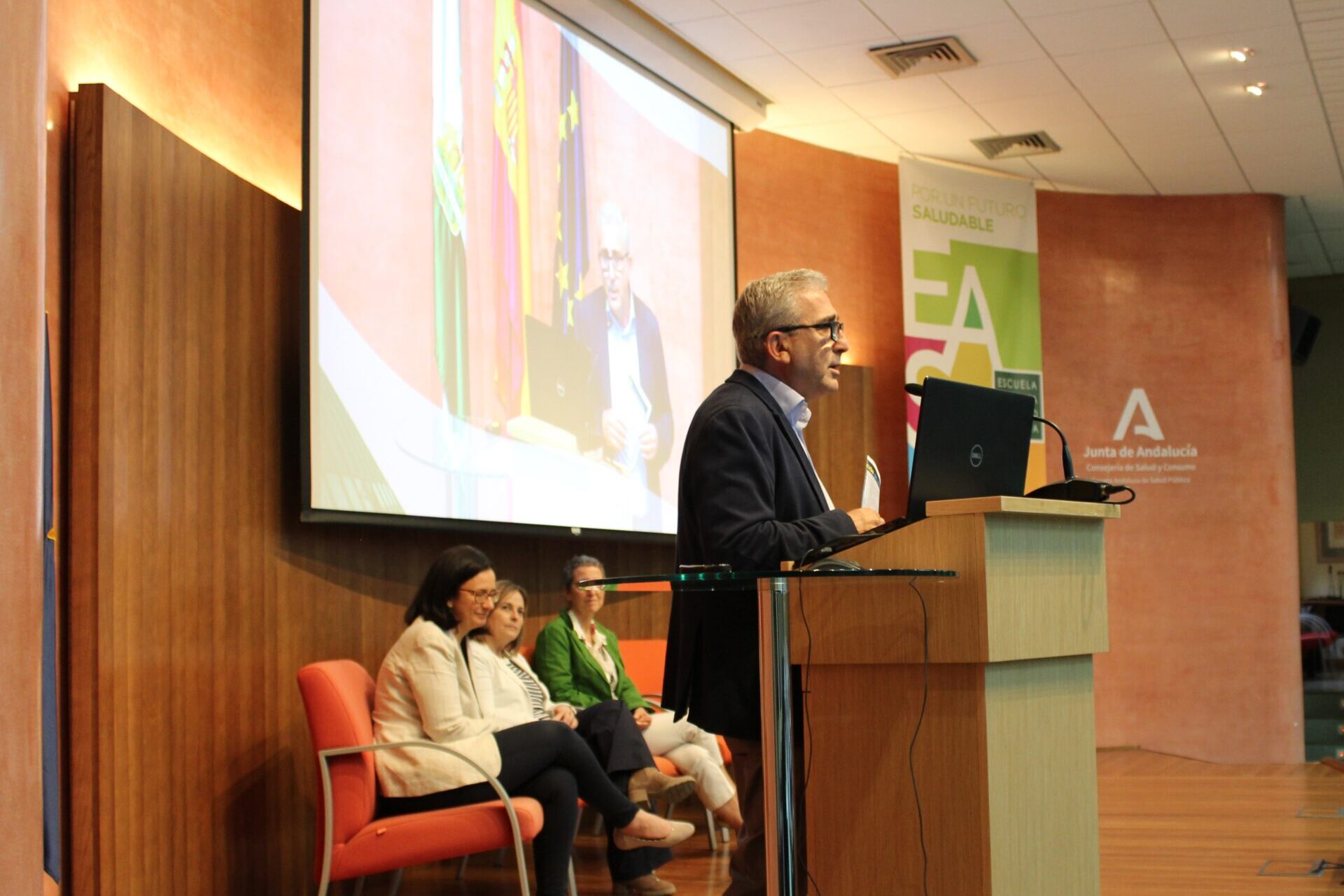El director general de Salud Pública y Ordenación Farmacéutica, Jorge del Diego, ha destacado en la inauguración de la jornada la importancia de la salud pública en el actual contexto de globalización y crisis climática, así como “los grandes retos a los que nos enfrentamos”. Del Diego ha explicado que “Andalucía cuenta con una organización de protección de la salud pionera en muchos aspectos y referente en su forma de trabajar, que día a día, muchas veces de forma no tan visible, evita riesgos para nuestra población. Por lo que actúa como un verdadero sistema que mejora nuestra salud en calidad y tiempo”.