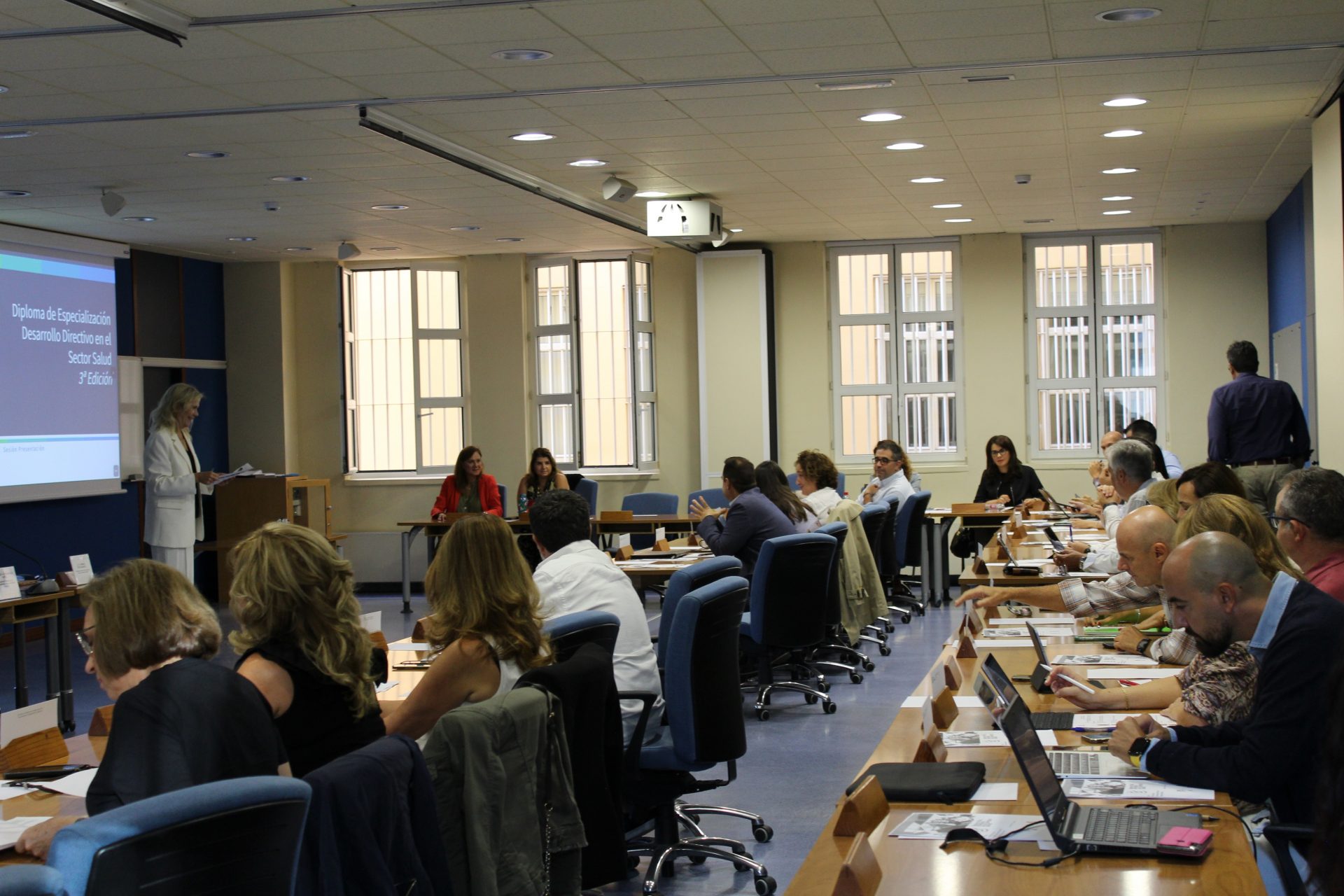 Un total de 41 profesionales de centros sanitarios de distintos servicios regionales de salud han iniciado su formación en dirección de instituciones sanitarias en la tercera edición del Diploma de Especialización en Salud. Estos profesionales trabajarán hasta el próximo mes de julio en la gestión de servicios sanitarios, tanto de atención primaria como hospitalaria, contribuyendo a la profesionalización de la dirección sanitaria.