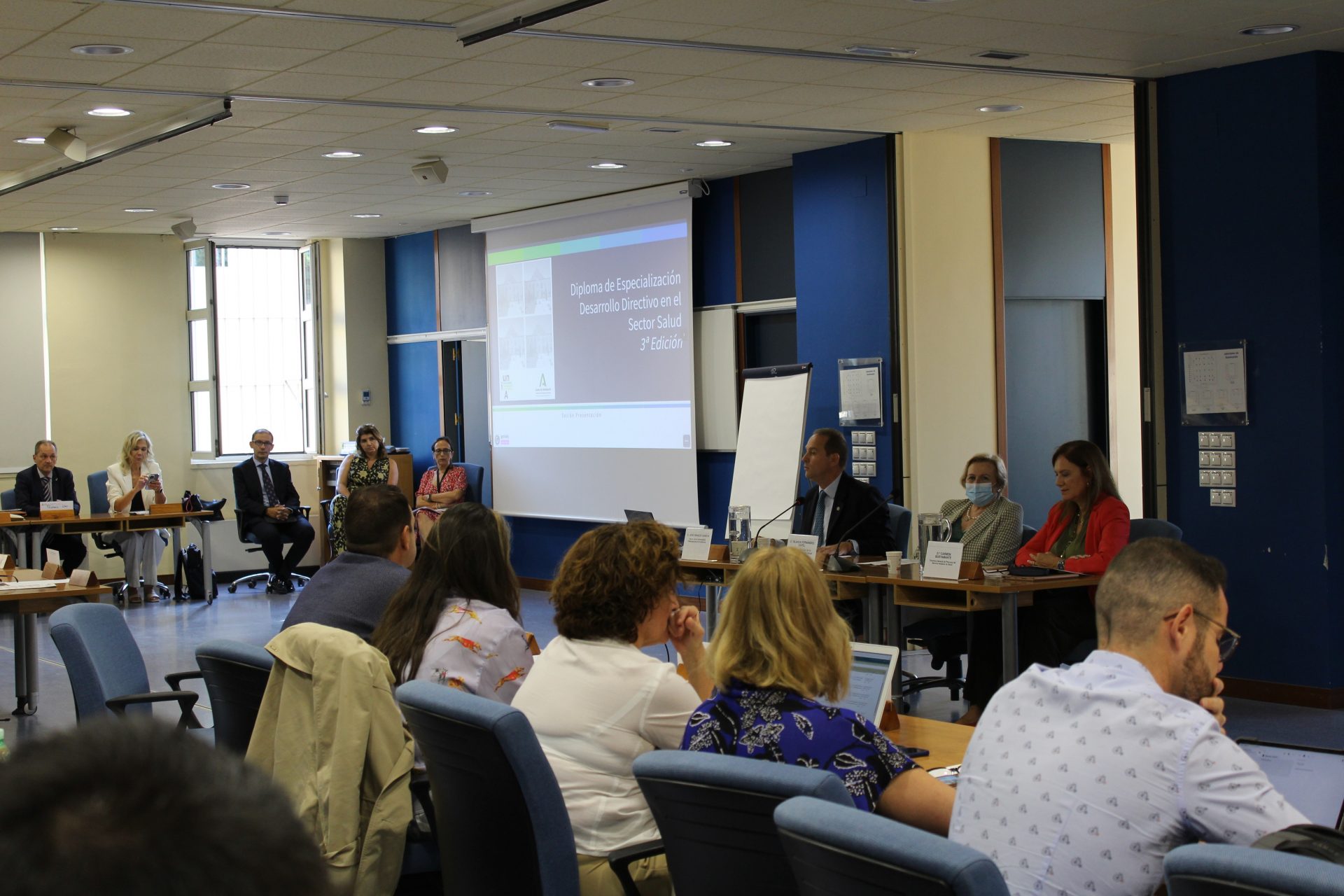 Durante su intervención, el rector ha destacado la calidad del Diploma que “está contribuyendo a la mejora de la sanidad de Andalucía y de otras comunidades autónomas a través de la profesionalización de sus equipos directivos”.