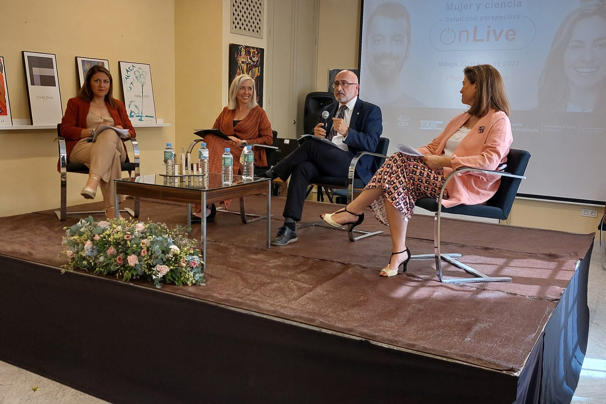Desde la Consejería de Salud y Consumo, a través de la Escuela Andaluza de Salud Pública, se ha diseñado esta Jornada de ‘Mujer y Ciencia: Salud con Perspectiva On Live’ con el fin último de mejorar la salud femenina, tal y como se ha puesto de manifiesto durante la bienvenida institucional, presidida por el secretario general de Salud Pública e I+D+i en Salud, Isaac Túnez; y que ha contado con la presencia de la directora general de Humanización, Planificación, Coordinación y Cuidados del Servicio Andaluz de Salud, Inmaculada Vázquez; y la directora ejecutiva de la Unidad de Established Brands de Organon, Cristina Alzina. Laura Teruel, profesora titular del Departamento de Periodismo de la Universidad de Málaga (UMA), fue la moderadora.
