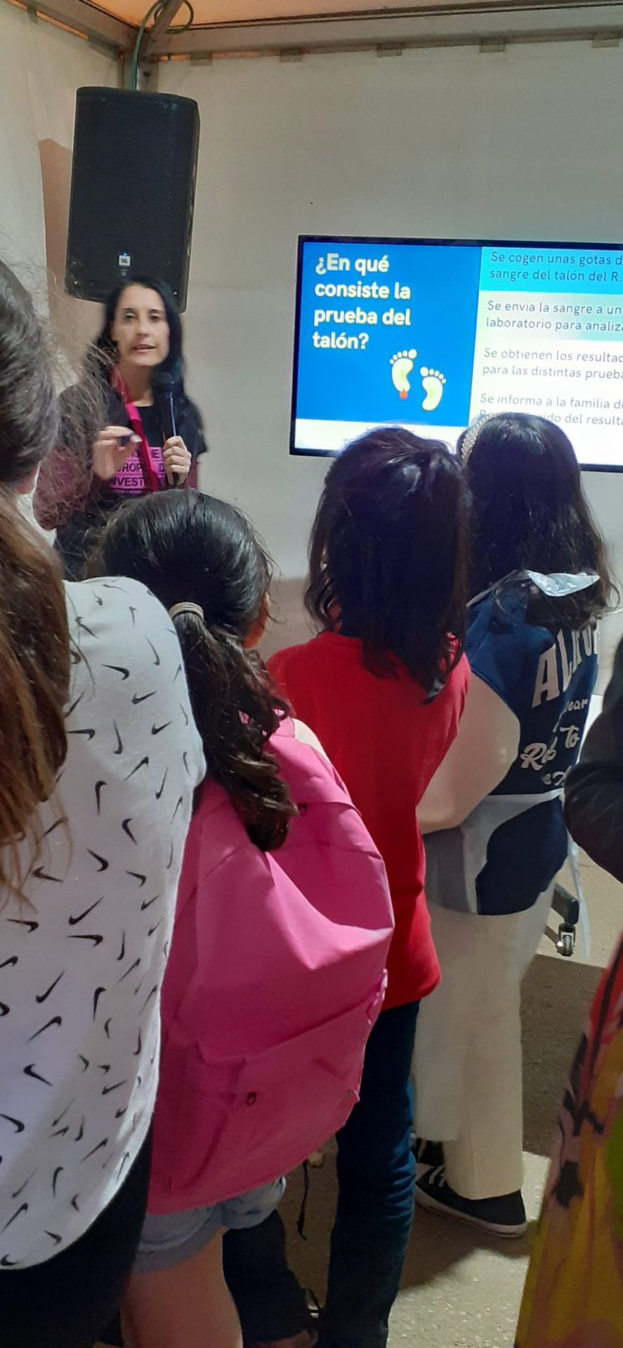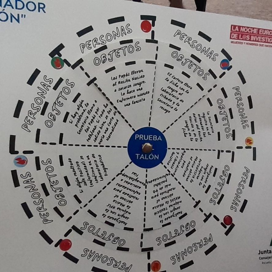 Taller interactivo donde los asistentes, en este caso niños, interpretarán los distintos roles para representar de forma interactiva el proceso que se sigue para la detección de enfermedades metabólicas a través del análisis de una pequeña muestra sanguínea recogida en el talón del Recién Nacido. La puesta en escena empezará con la toma de la muestra en un centro sanitario donde acuden los padres junto a su bebé. Esta muestra se enviará por correo certificado y llegará a un laboratorio donde, haciendo uso de tecnología sofisticada y aplicaciones informáticas, se analizará y se obtendrá un resultado analítico, comunicándole a los padres el resultado, bien sea positivo o negativo.