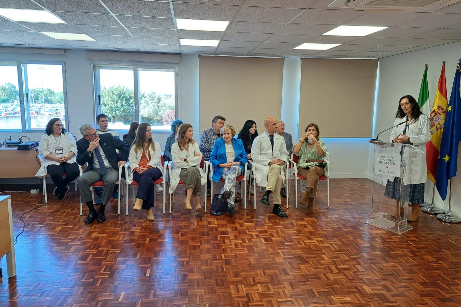 La delegada de Salud y Consumo, María Jesús Botella, ha presentado esta mañana la iniciativa acompañada por el director gerente del hospital, Francisco Triviño, la directora de la EASP, Blanca Fernández-Capel, el presidente del COFCO, Rafael Casaño, el miembro de la directiva de la Federación de Salud Mental Andalucía y presidente de ASAENEC Salud Mental Córdoba, Juan Guijo, y profesionales de los hospitals participantes, así como pacientes del Hospital Reina Sofía.