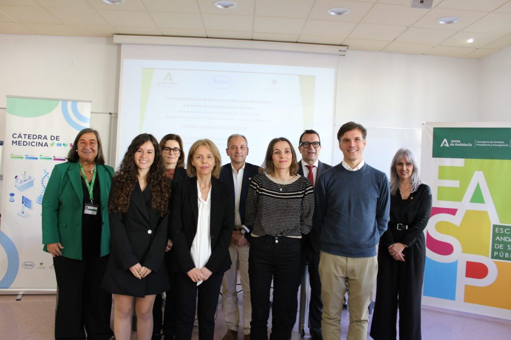 La Cátedra de Medicina Personalizada y de Precisión, dirigida por la doctora María José Sánchez, directora científica de ibs.GRANADA y profesora de la EASP, y María José Serrano, investigadora Nicolás Monarde de GENyO, y en la que participan la Universidad de Granada, la Escuela Andaluza de Salud Pública (EASP) y Roche Farma S.A., tiene entre sus objetivos promover actividades formativas, investigadoras y de transferencia de conocimiento que fortalezcan el desarrollo de la Medicina Personalizada y de Precisión.