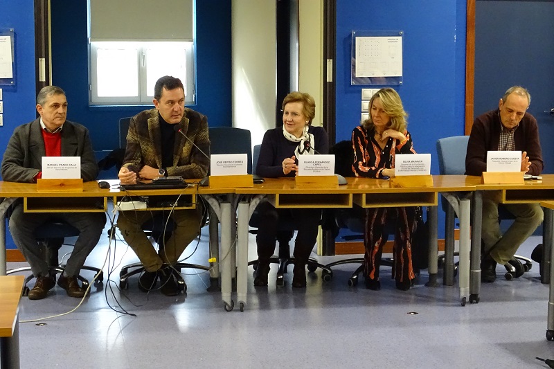 En el inicio de la sesión de trabajo han estado, de izquierda a derecha, el jefe de servicio del programa de Salud Mental, Manuel Prado; el director general Atención Sociosanitara, José Repiso; la directora gerente de la EASP, Blanca Fernández-Capel; la gerente de FAISEM, Silvia Maraver; y el psiquiatra del hospital Virgen de la Victoria de Málaga, Javier Romero.