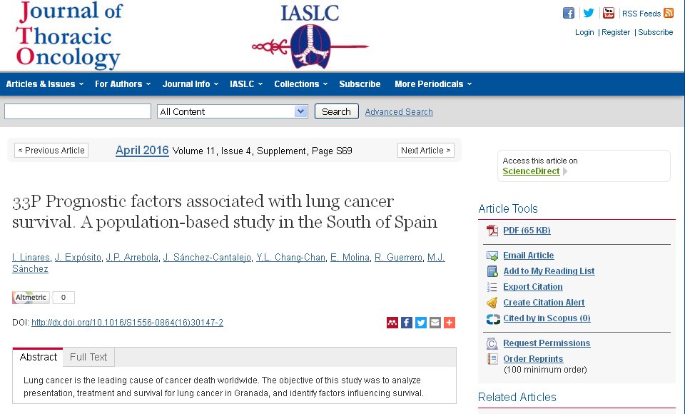 Lung cancer is the leading cause of cancer death worldwide. The objective of this study was to analyze presentation, treatment and survival for lung cancer in Granada, and identify factors influencing survival.