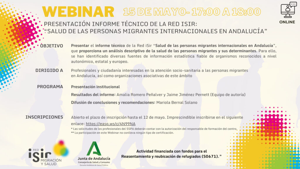 OBJETIVO Presentar el informe técnico de la Red iSir “Salud de las personas migrantes internacionales en Andalucía”, que proporciona un análisis descriptivo de la salud de las personas migrantes y sus determinantes. Para ello, se han identificado diversas fuentes de información estadística fiable de organismos reconocidos a nivel autonómico, estatal y europeo.