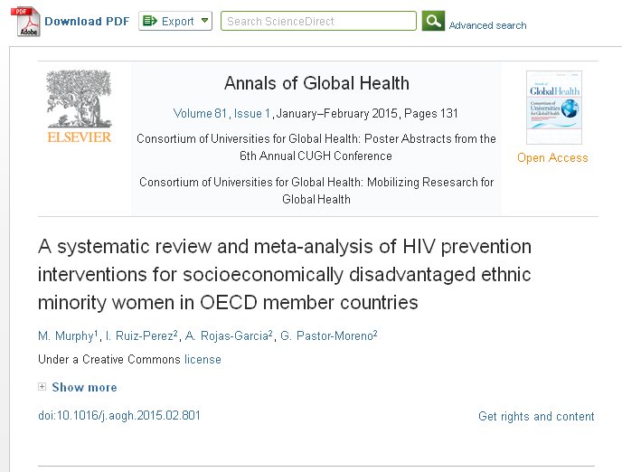 Recently there have been many encouraging developments in the global effort to combat HIV and AIDS. The latest data collected by UNAIDS on the status of the disease showed a 33% reduction in new HIV cases since 2001 and a decrease of 700,000 deaths annually since the peak in 2005. 1 Within the 34 countries that make up the Organization for Economic Cooperation and Development (OECD), public health efforts have been successful in reducing the incidence of AIDS and improving the survival of those infected with HIV. 2 However, the incidence of new HIV infections remain stubbornly high with socioeconomically deprived communities, and women in particular, making up a disproportionate number of new cases. 3 There is a need for a greater understanding of the prevention interventions which can successfully educate this population, change behaviors associated with transmission and ultimately reduce the spread of sexually transmitted diseases such as HIV. The aim of this work was to identify, characterize and evaluate health interventions aimed at preventing HIV infection in women from socioeconomically disadvantaged ethnic mintority groups in OECD countries.