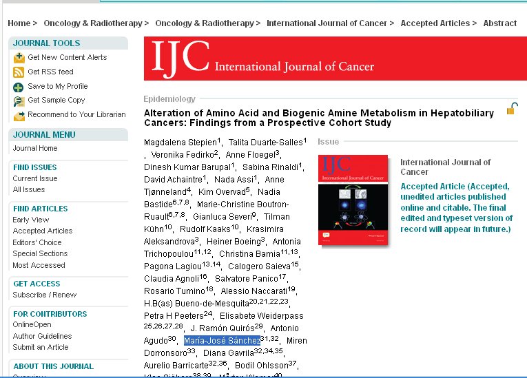 Perturbations in levels of amino acids (AA) and their derivatives are observed in hepatocellular carcinoma (HCC). Yet, it is unclear whether these alterations precede or are a consequence of the disease, nor whether they pertain to anatomically related cancers of the intrahepatic bile duct (IHBC), and gallbladder and extrahepatic biliary tract (GBTC). Circulating standard AA, biogenic amines and hexoses were measured (Biocrates AbsoluteIDQ-p180Kit) in a case-control study nested within a large prospective cohort (147 HCC, 43 IHBC and 134 GBTC cases). Liver function and hepatitis status biomarkers were determined separately. Multivariable conditional logistic regression was used to calculate odds ratios and 95% confidence intervals (OR; 95%CI) for log-transformed standardised (mean=0, SD=1) serum metabolite levels and relevant ratios in relation to HCC, IHBC or GBTC risk. Fourteen metabolites were significantly associated with HCC risk, of which 7 metabolites and 4 ratios were the strongest predictors in continuous models. Leucine, lysine, glutamine and the ratio of branched chain to aromatic AA (Fischer’s ratio) were inversely, while phenylalanine, tyrosine and their ratio, glutamate, glutamate/glutamine ratio, kynurenine and its ratio to tryptophan were positively associated with HCC risk. Confounding by hepatitis status and liver enzyme levels was observed. For the other cancers no significant associations were observed. In conclusion, imbalances of specific AA and biogenic amines may be involved in HCC development. This article is protected by copyright. All rights reserved.