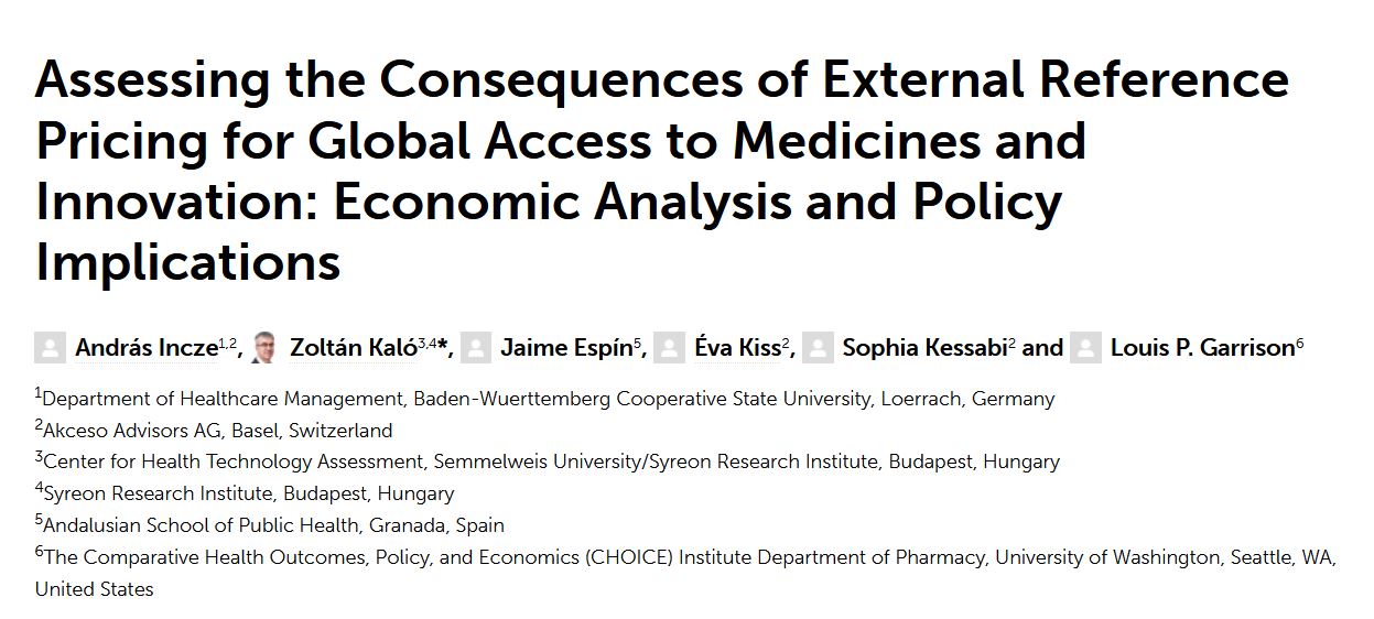 Conclusion: This research provides key insights on potential unintentional consequences of medicine price setting by ERP worldwide and under a new proposal for the United States. Our results can inform stakeholder discussions to improve patient access to innovative medicines globally.