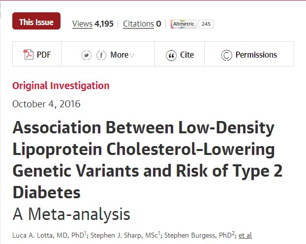 Design, Setting, and Participants The associations with type 2 diabetes and coronary artery disease of LDL-C-lowering genetic variants were investigated in meta-analyses of genetic association studies. Meta-analyses included 50 775 individuals with type 2 diabetes and 270 269 controls and 60 801 individuals with coronary artery disease and 123 504 controls. Data collection took place in Europe and the United States between 1991 and 2016.