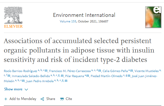 Continuous exposure to low doses of persistent organic pollutant (POPs), such as those occurring in the general population, might contribute to the burden of type 2 diabetes mellitus (T2DM). However, evidences from longitudinal studies are scarce. We aimed to explore the associations of accumulated POP exposure with the development of T2DM by means of 1) longitudinal associations with the 16-year incidence of the disease, and 2) complementary cross-sectional analyses with markers of glucose homeostasis at recruitment. Organochlorine pesticide and polychlorinated biphenyl (PCB) concentrations were analyzed in adipose tissue samples and incident T2DM cases were retrieved from clinical records. Homeostatic model assessment values of insulin sensitivity/resistance and β-cell function at recruitment were calculated. Linear and Cox-regression models were performed. In individuals with normal weight/overweight (n = 293), we observed positive dose–response relationships between the studied POPs and T2DM risk, particularly for hexachlorobenzene (HCB) [hazard ratio (HR): 3.96 for 4th quartile versus 1st quartile (Q1); confidence interval (CI) 95%: 0.79, 19.71]. PCB-180 showed a positive but seemingly non-linear association with T2DM risk [HR of 3er quartile (Q3) versus Q1: 6.48; CI 95%: 0.82, 51.29]. Unadjustment for body mass index considerably increased the magnitude of the associations. In the cross-sectional study (n = 180), HCB and PCB-180 were inversely associated with insulin sensitivity and positively associated with insulin resistance parameters. Our results suggest that a higher burden of specific POPs in adipose tissue may disrupt glucose homeostasis, possibly contributing to increase T2DM risk, especially in non-obese adults.