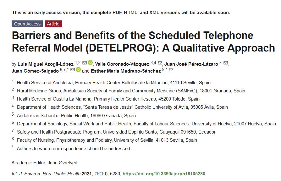 The recently developed scheduled mobile-telephone referral model (DETELPROG) has achieved especially important results in reducing waiting days for patients, but it has been decided to explore what barriers and positive aspects were detected by both primary care physicians (PCPs) and hospital attending physicians (HAPs) regarding its use. For this, a qualitative descriptive study was carried out through six semi-structured interviews and two focus groups in a sample of eleven PCPs and five HAPs. Interviews were carried out from September 2019 to February 2020. Data were analysed by creating the initial categories, recording the sessions, transcribing the information, by doing a comprehensive reading of the texts obtained, and analysing the contents. The results show that DETELPROG gives the PCP greater prominence as a patient’s health coordinator by improving their relationship and patient safety; it also improves the relationship between PCP and HAP, avoiding unnecessary face-to-face referrals and providing safety to the PCP when making decisions. The barriers for DETELPROG to be used by PCP were defensive medicine, patients’ skepticism in DETELPROG, healthcare burden, and inability to focus on the patient or interpret a sign, symptom, or diagnostic test. For HAP, the barriers were lack of confidence in the PCP and complexity of the patient. As a conclusion, DETELPROG referral model provides a lot of advantages and does not pose any new barrier to face-to-face referral or other non-face-to-face referral models, so it should be implemented in primary care.