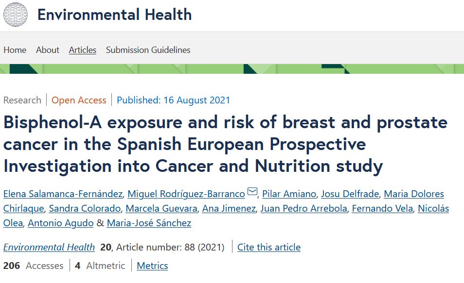 We found a similar percentage of detection of BPA among cases and sub-cohort from our population, and no association with breast cancer risk was observed. However, we found a higher risk of prostate cancer for the increase in serum BPA levels. Further investigation is needed to understand the influence of BPA in prostate cancer risk.
