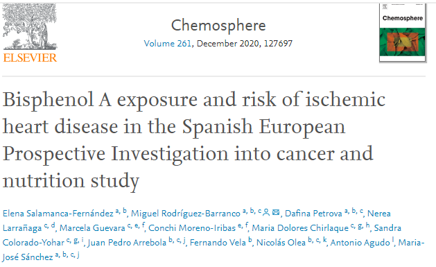 Cardiovascular disease, particularly ischemic heart disease (IHD), is the leading cause of mortality worldwide. Bisphenol A (BPA) is considered an endocrine disruptor and obesogen, present in numerous products of daily use. The aim of this study was to assess the potential association of serum BPA concentrations and the risk of incident IHD in a sub-cohort of the Spanish European Prospective Investigation into Cancer and Nutrition (EPIC).
