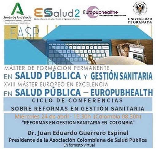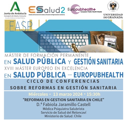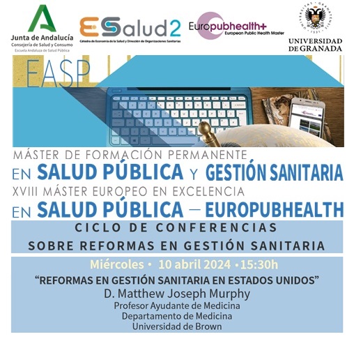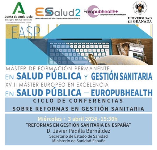 La Directora Gerente de la Escuela Andaluza de Salud Pública y la Dirección del XXXIX Máster de Formación Permanente en Salud Pública y Gestión Sanitaria, y del XVIII Máster Universitario Erasmus Mundus en Excelencia en Salud Pública (Europubhealth), así como la dirección de la Cátedra eSalud2, Cátedra de Economía de la Salud y Dirección de Organizaciones Sanitarias, tienen el honor de invitarte a asistir a este ciclo de conferencias.