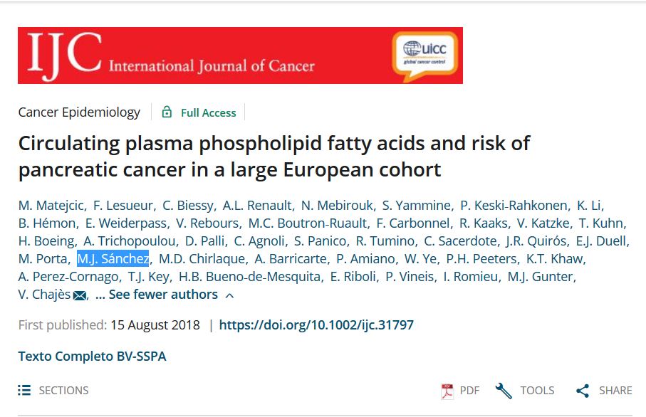 There are both limited and conflicting data on the role of dietary fat and specific fatty acids in the development of pancreatic cancer. In this study, we investigated the association between plasma phospholipid fatty acids and pancreatic cancer risk in the European Prospective Investigation into Cancer and Nutrition (EPIC) cohort. The fatty acid composition was measured by gas chromatography in plasma samples collected at recruitment from375 incident pancreatic cancer cases and375 matched controls. Associations of specific fatty acids with pancreatic cancer risk were evaluated using multivariable conditional logistic regression models with adjustment for established pancreatic cancer risk factors. Statistically significant inverse associations were found between pancreatic cancer incidence and levels of heptadecanoic acid (ORT3‐T1[odds ratio for highest versus lowest tertile] =0.63; 95%CI[confidence interval] = 0.41–0.98; ptrend = 0.036), n‐3 polyunsaturated α‐linolenic acid (ORT3‐T1 = 0.60; 95%CI = 0.39–0.92; ptrend = 0.02) and docosapentaenoic acid (ORT3‐T1 = 0.52; 95%CI = 0.32–0.85; ptrend = 0.008). Industrial trans‐fatty acids were positively associated with pancreatic cancer risk among men (ORT3‐T1 = 3.00; 95%CI = 1.13–7.99; ptrend = 0.029), while conjugated linoleic acids were inversely related to pancreatic cancer among women only (ORT3‐T1 = 0.37; 95%CI = 0.17–0.81; ptrend = 0.008). Among current smokers, the long‐chain n‐6/n‐3 polyunsaturated fatty acids ratio was positively associated with pancreatic cancer risk (ORT3‐T1 = 3.40; 95%CI = 1.39–8.34; ptrend = 0.007). Results were robust to a range of sensitivity analyses. Our findings suggest that higher circulating levels of saturated fatty acids with an odd number of carbon atoms and n‐3 polyunsaturated fatty acids may be related to lower risk of pancreatic cancer. The influence of some fatty acids on the development of pancreatic cancer may be sex‐specific and modulated by smoking.