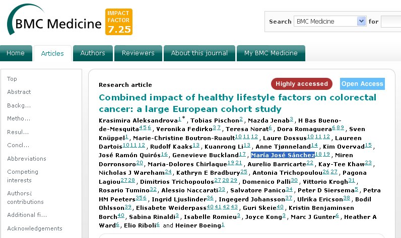 Excess body weight, physical activity, smoking, alcohol consumption and certain dietary factors are individually related to colorectal cancer (CRC) risk; however, little is known about their joint effects. The aim of this study was to develop a healthy lifestyle index (HLI) composed of five potentially modifiable lifestyle factors ¿ healthy weight, physical activity, non-smoking, limited alcohol consumption and a healthy diet, and to explore the association of this index with CRC incidence using data collected within the European Prospective Investigation into Cancer and Nutrition (EPIC) cohort.