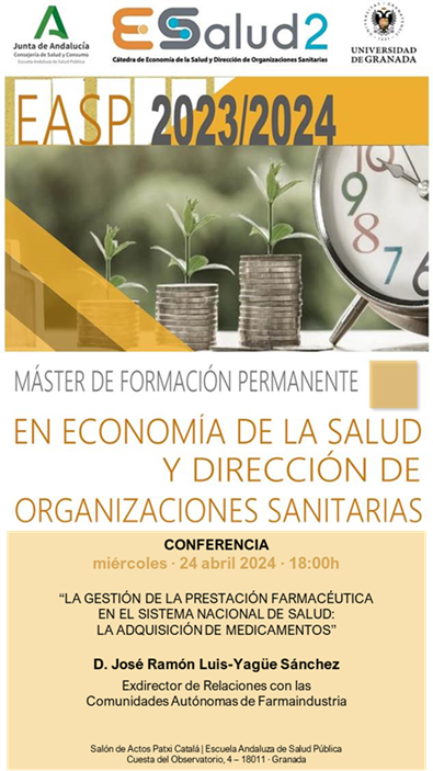 La Directora Gerente de la Escuela Andaluza de Salud Pública y la Dirección del XIV Máster de Formación Permanente en Economía de la Salud y Dirección de Organizaciones Sanitarias, tienen el honor de invitarte a asistir a la siguiente conferencia.