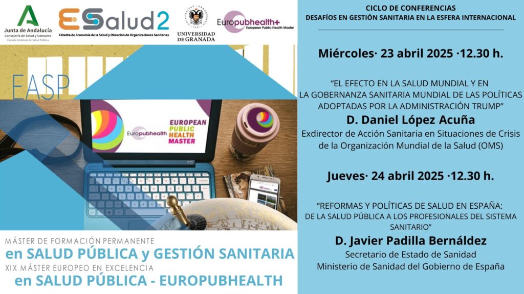 El Director Gerente de la Escuela Andaluza de Salud Pública y la Dirección del XL Máster de Formación Permanente en Salud Pública y Gestión Sanitaria y XIX Máster Europeo en Excelencia en Salud Pública – Europubhealth+ tienen el honor de invitarte a asistir a la tercera sesión del