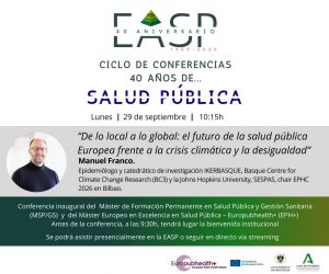 Conferencia inaugural de la 41ª edición del Máster de Formación Permanente en Salud Pública y Gestión Sanitaria (MSP/GS) y 20ª edición del Máster Europeo en Excelencia en Salud Pública – Europubhealth+ (EPH+)