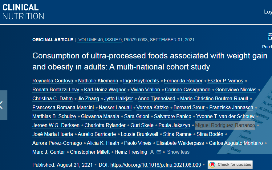 There is a worldwide shift towards increased consumption of ultra-processed foods (UPF) with concurrent rising prevalence of obesity. We examined the relationship between the consumption of UPF and weight gain and risk of obesity.