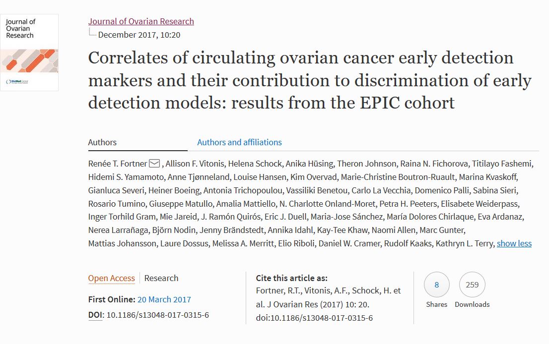 Ovarian cancer early detection markers CA125, CA15.3, HE4, and CA72.4 vary between healthy women, limiting their utility for screening.
