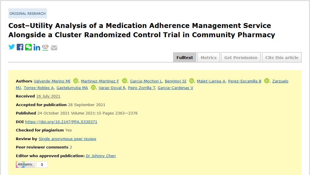Conclusion: The medication adherence management service resulted in an improvement in the quality of life of the population with chronic disease, with similar costs compared to usual care. The service is cost-effective
