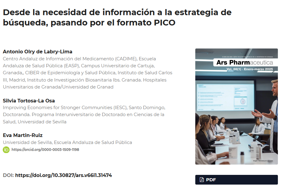 Dado el crecimiento exponencial de la producción científica, resulta imprescindible que profesionales y la comunidad universitaria dispongan de herramientas y competencias para hacer eficiente la búsqueda de información relevante. Las necesidades de información requieren ser trabajadas y transformadas en preguntas susceptibles de ser contestadas, para lo que resulta de gran utilidad la adaptación al formato PICO: acrónimo de Paciente, Intervención, Comparación y Resultados (outcomes en inglés). La utilización de esta fórmula servirá para la identificación de los elementos fundamentales de dicha pregunta, así como guía durante todo el proceso búsqueda de información, ayudando en la definición y construcción de la estrategia de búsqueda. Este trabajo presenta las claves para la formulación de preguntas en formato PICO con el objetivo de avanzar en nuestras búsquedas bibliográficas.